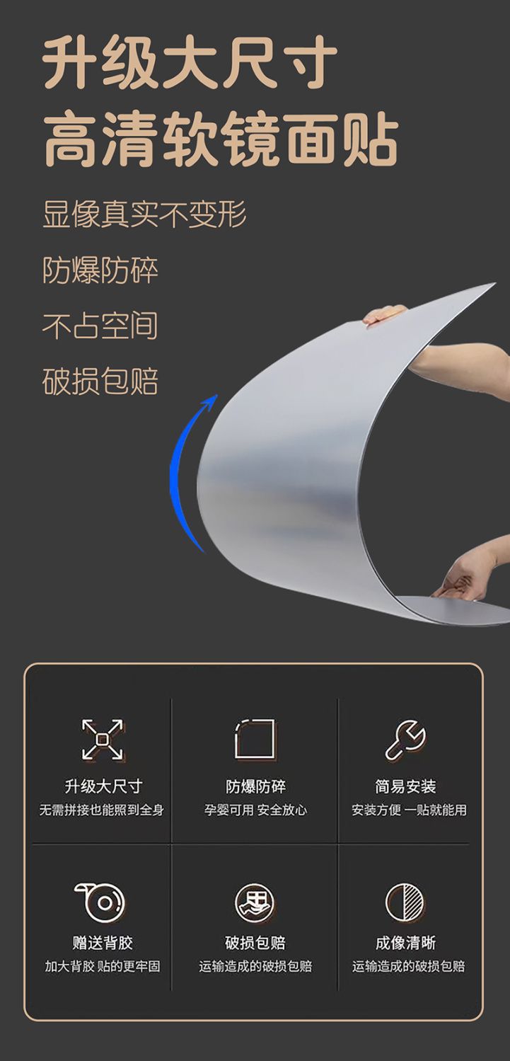 rounded-edge mirror surface 20*20cm [hd imaging, guaranteed compensation for damage]