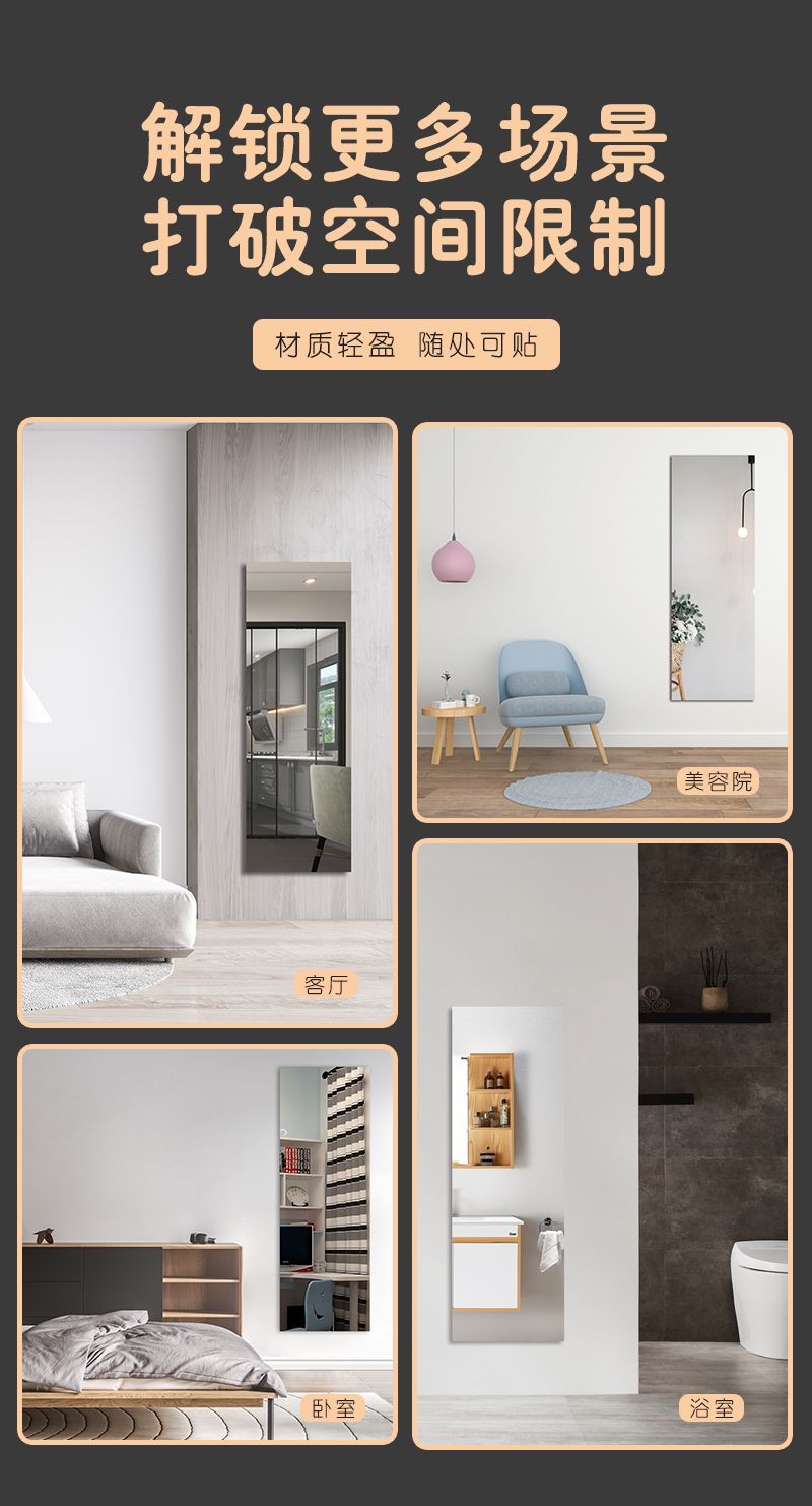 rounded-edge mirror 30*80cm [hd imaging, guaranteed compensation for damage]