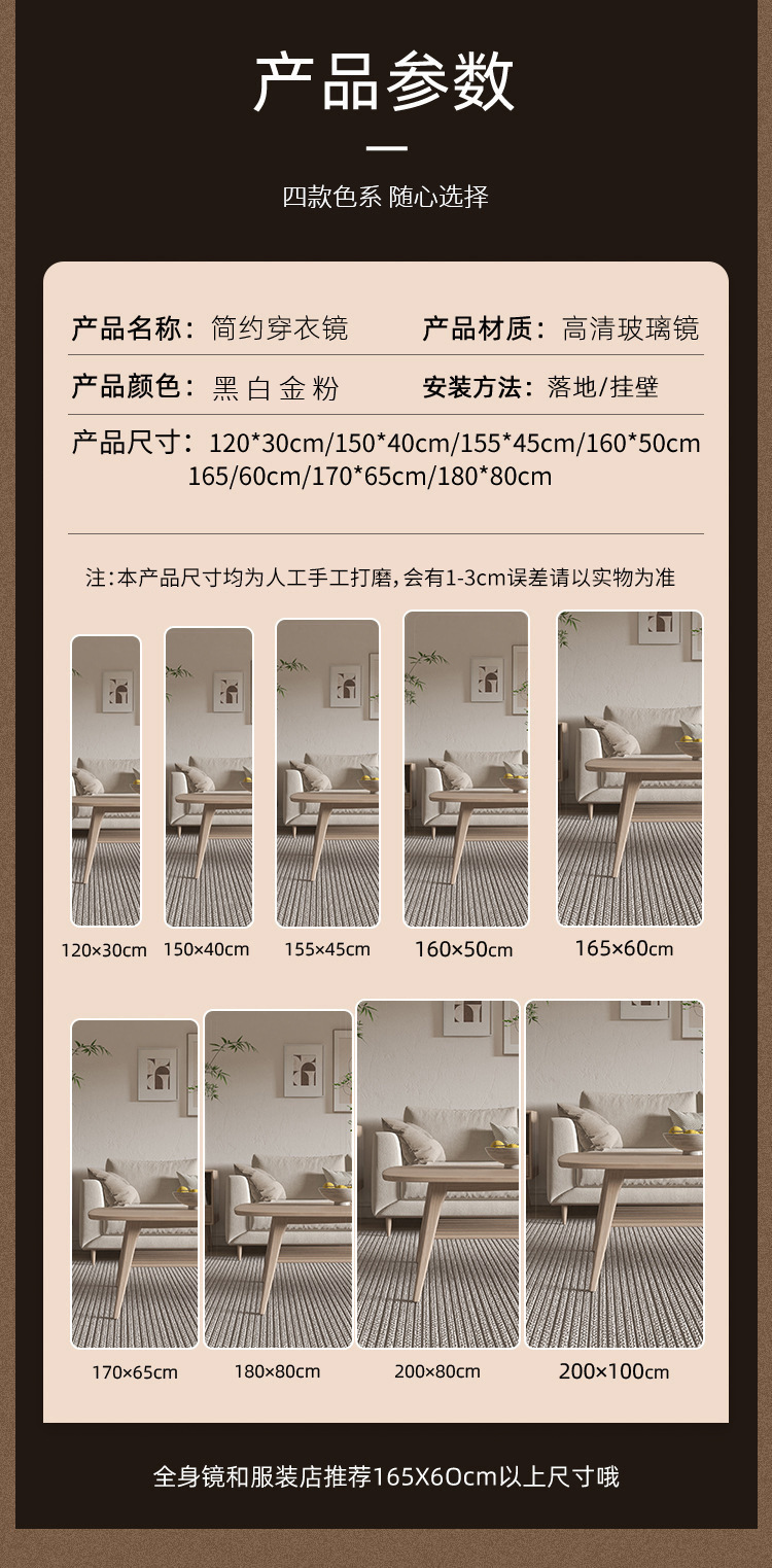 60 * 165cm light luxury gold-ultra clear explosion-proof damaged guaranteed compensation