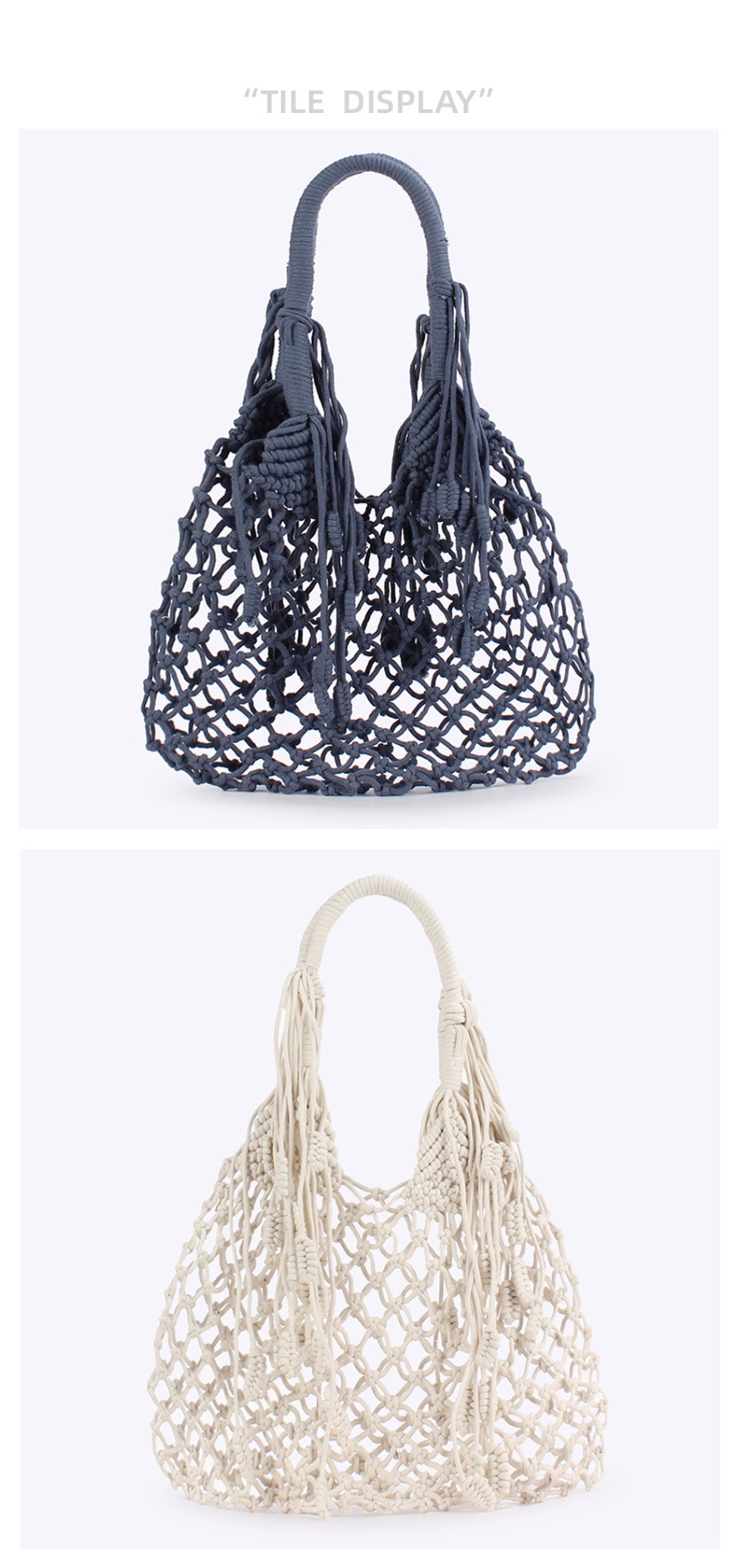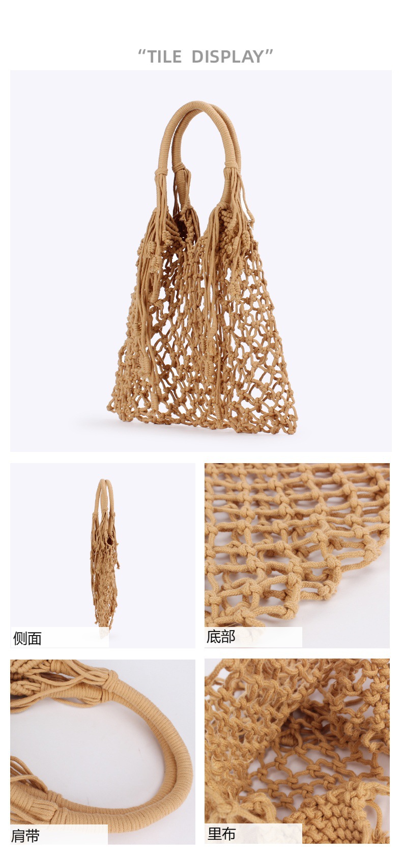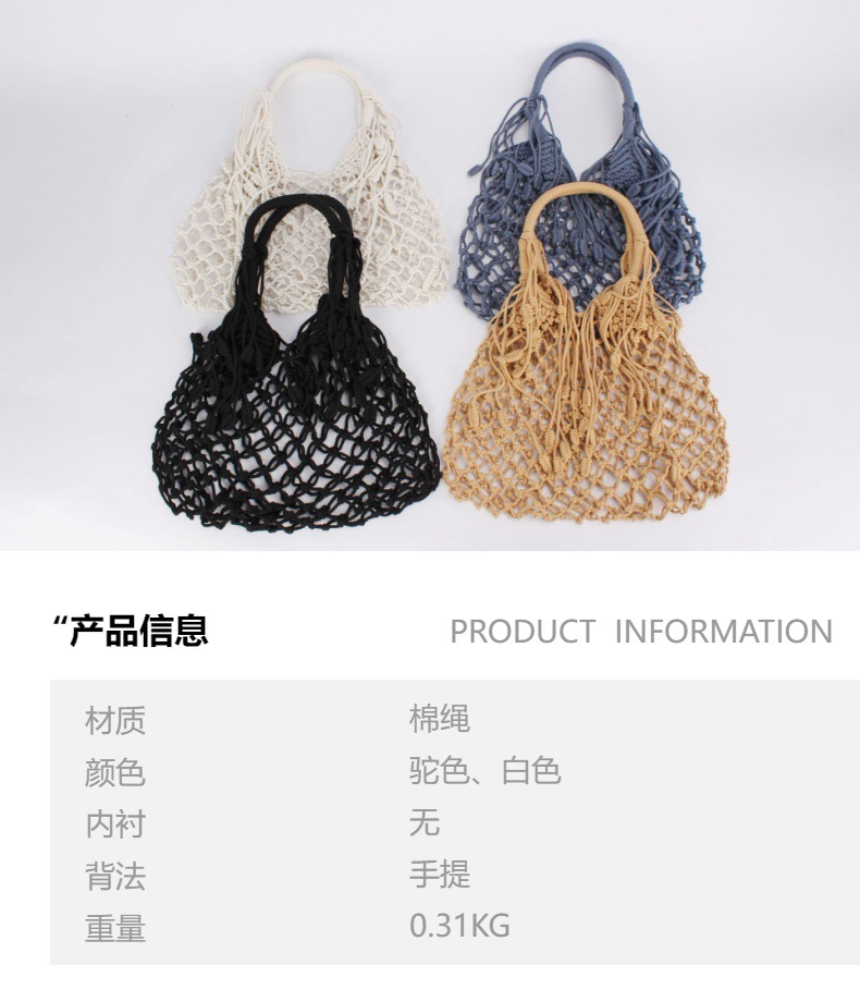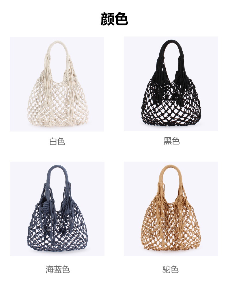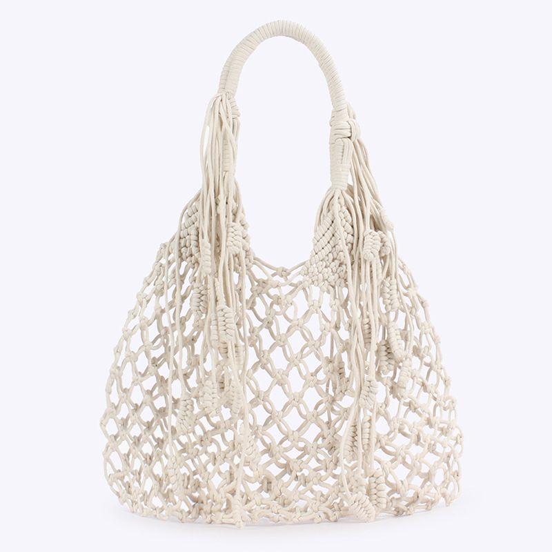 new ins style tassel shoulder woven bag trendy women mori style cotton string woven bag holiday cotton string net pocket beach bag