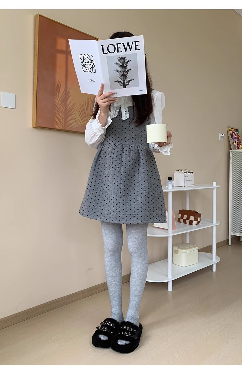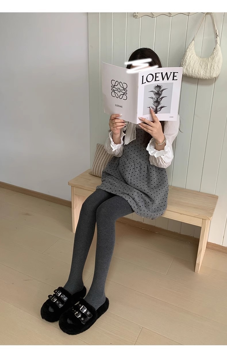 color: black trousers connected with feet, dark gray pantynose, medium gray pantynose, light gray