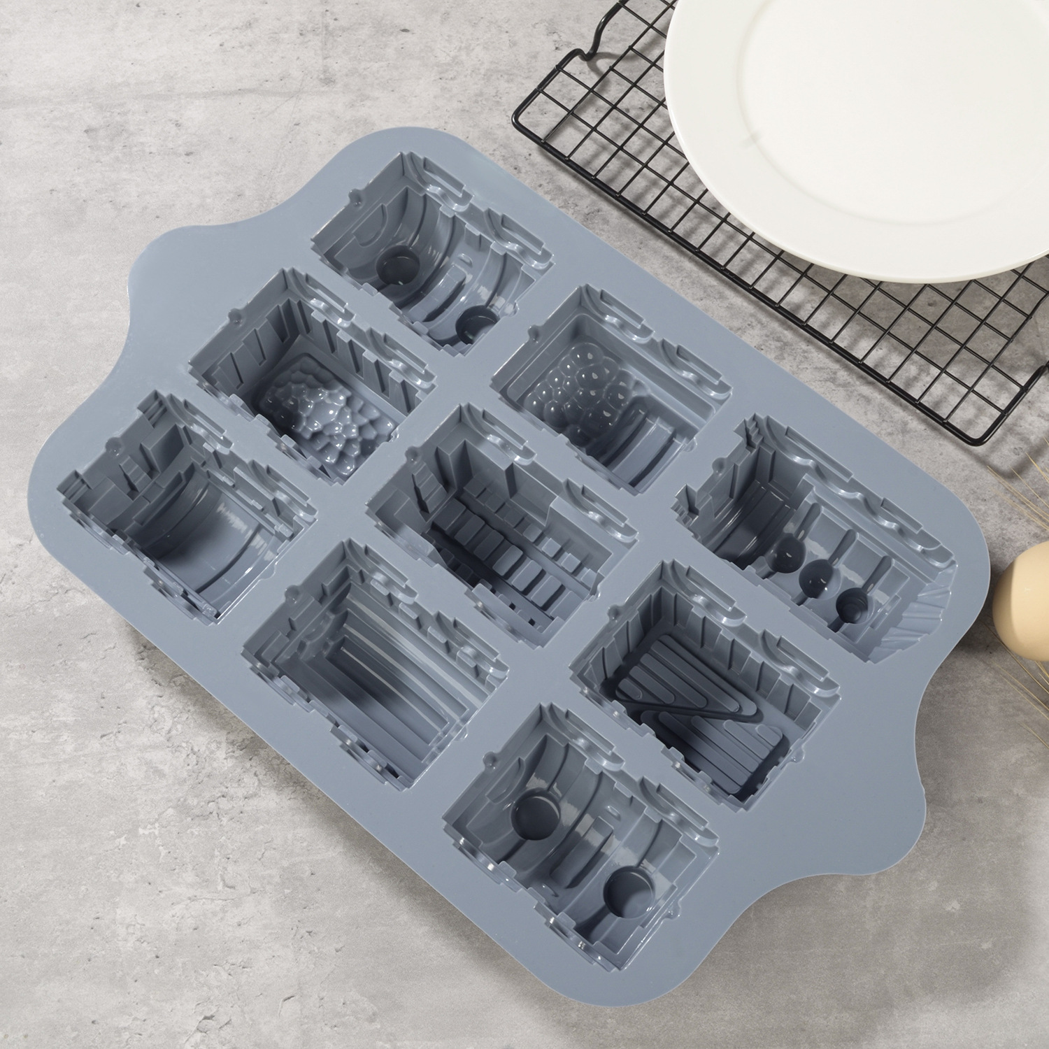 specifications: 9-piece train cake mold