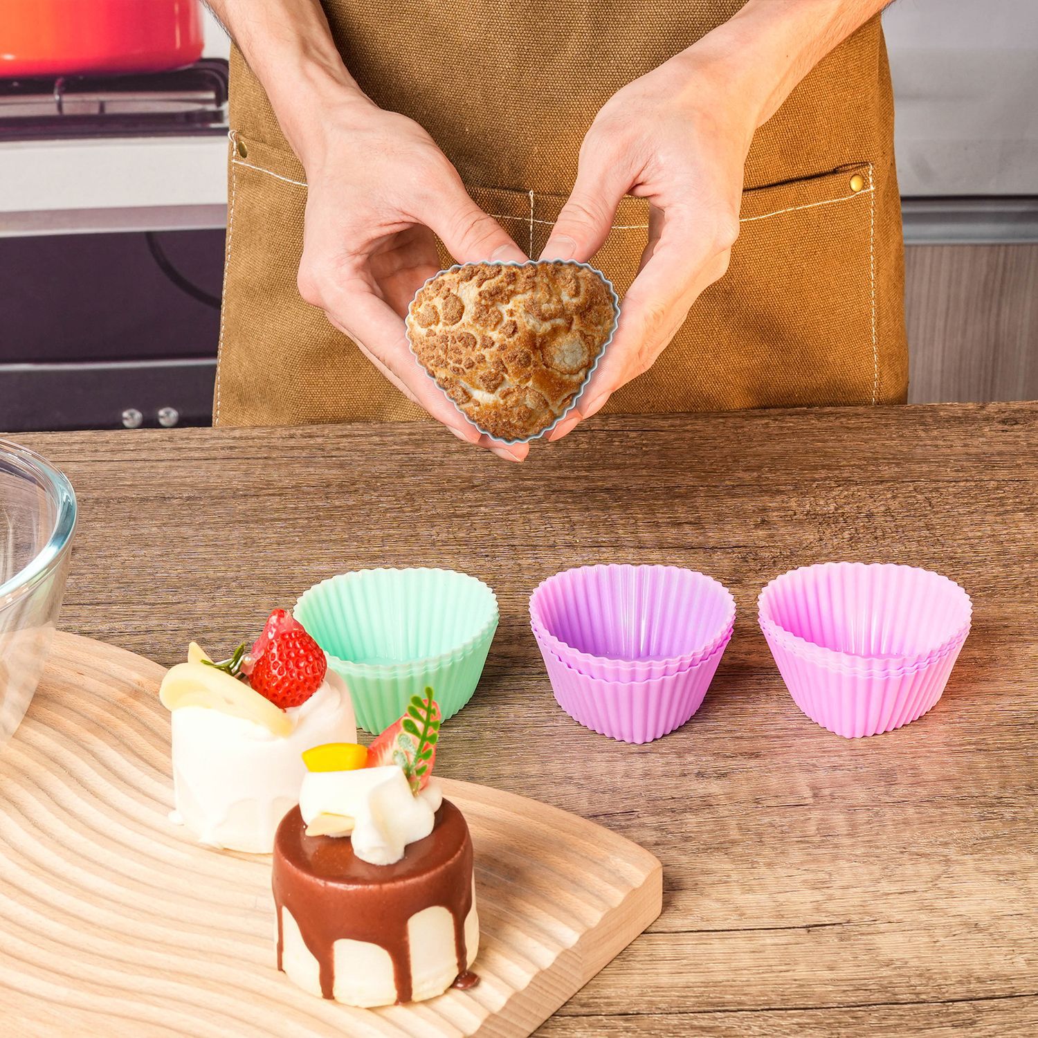 12pcs heart-shaped cake cups (macaron colors)