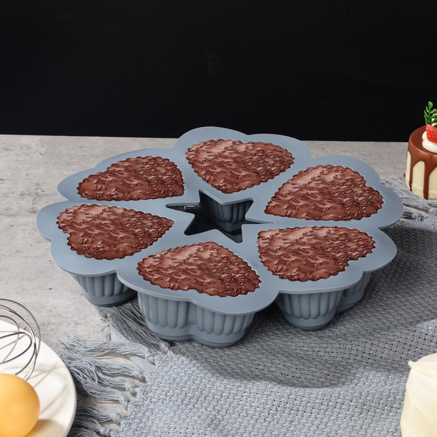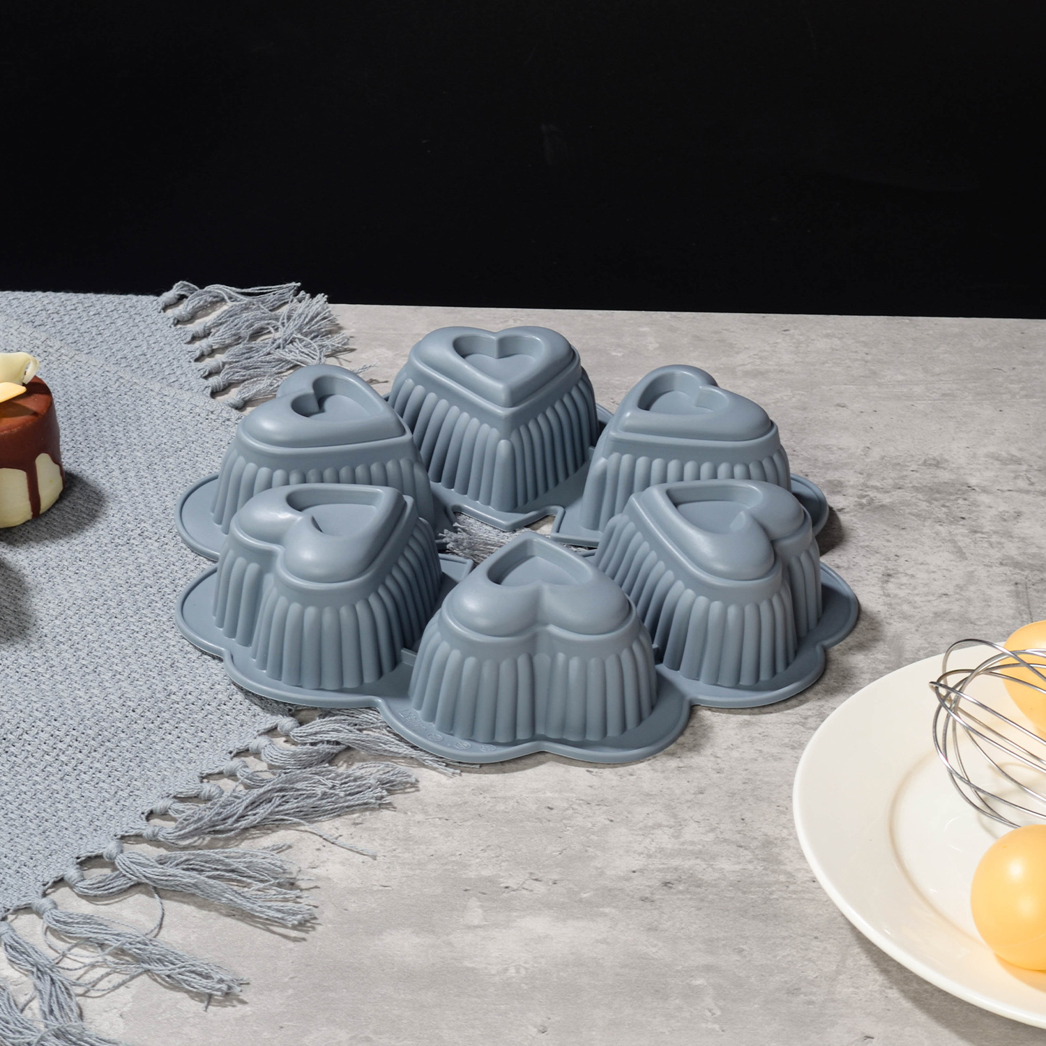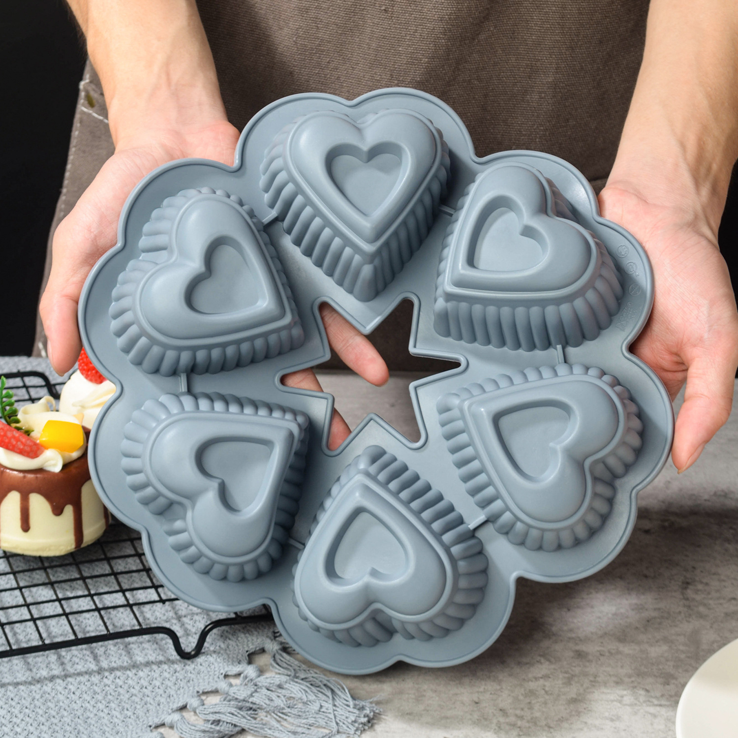 gray six-hole heart-shaped baking pan