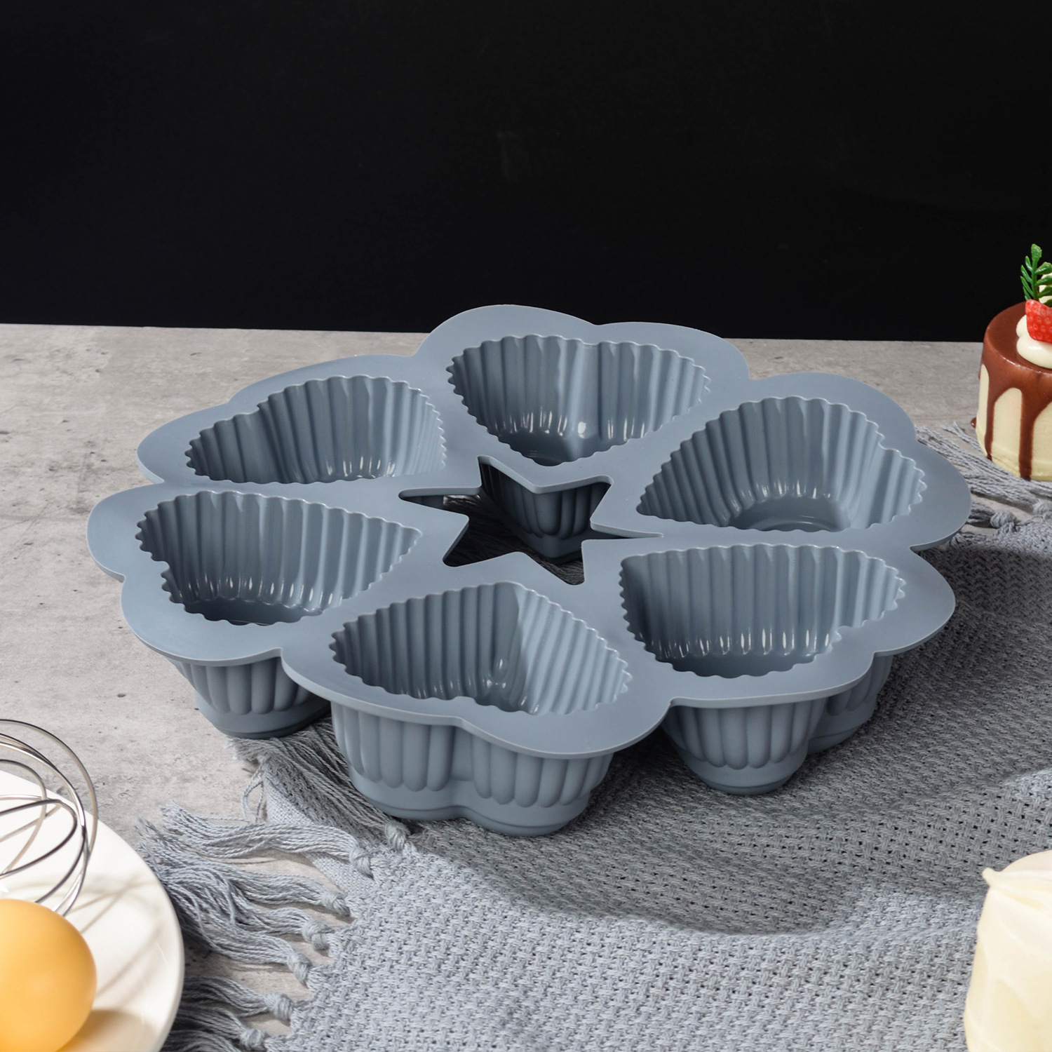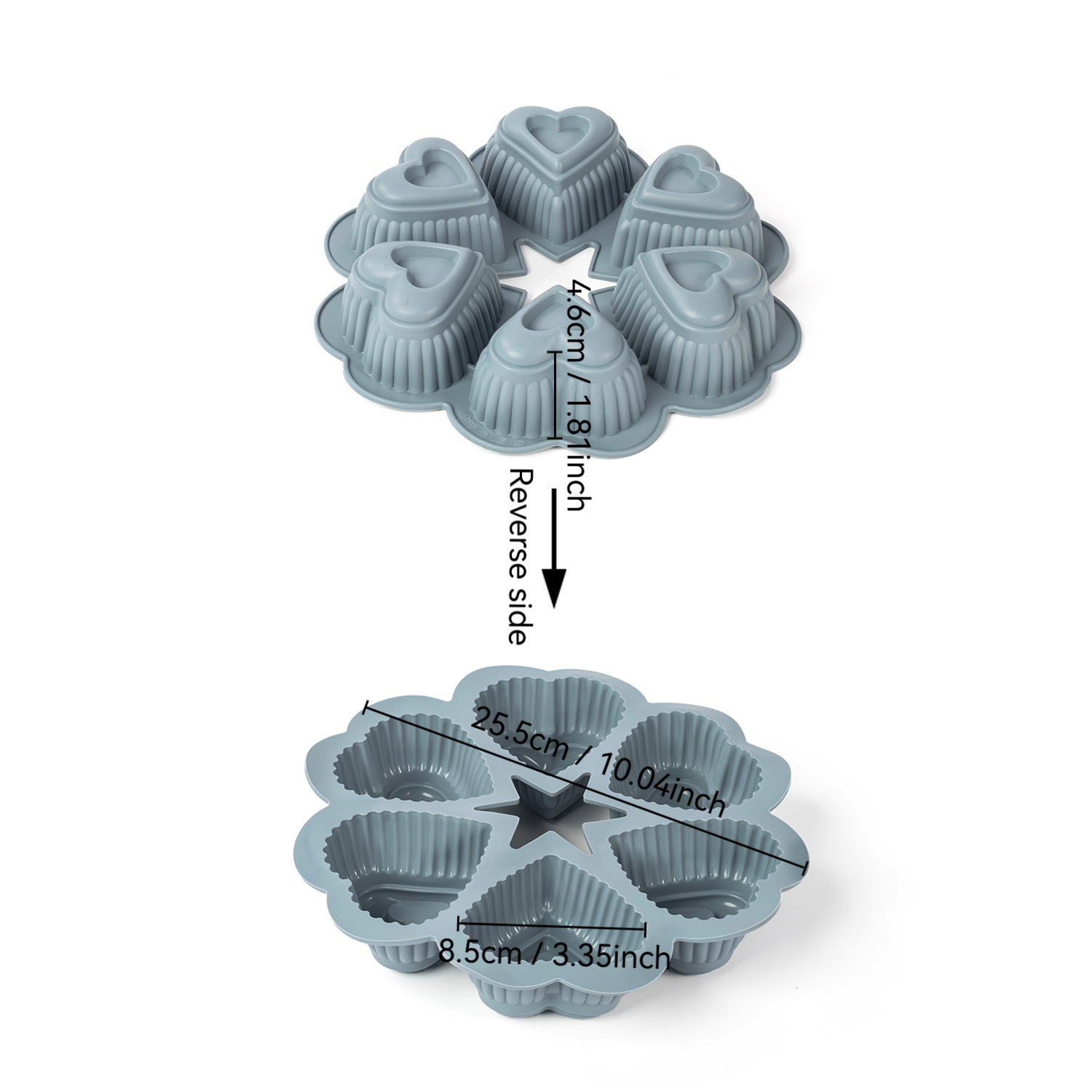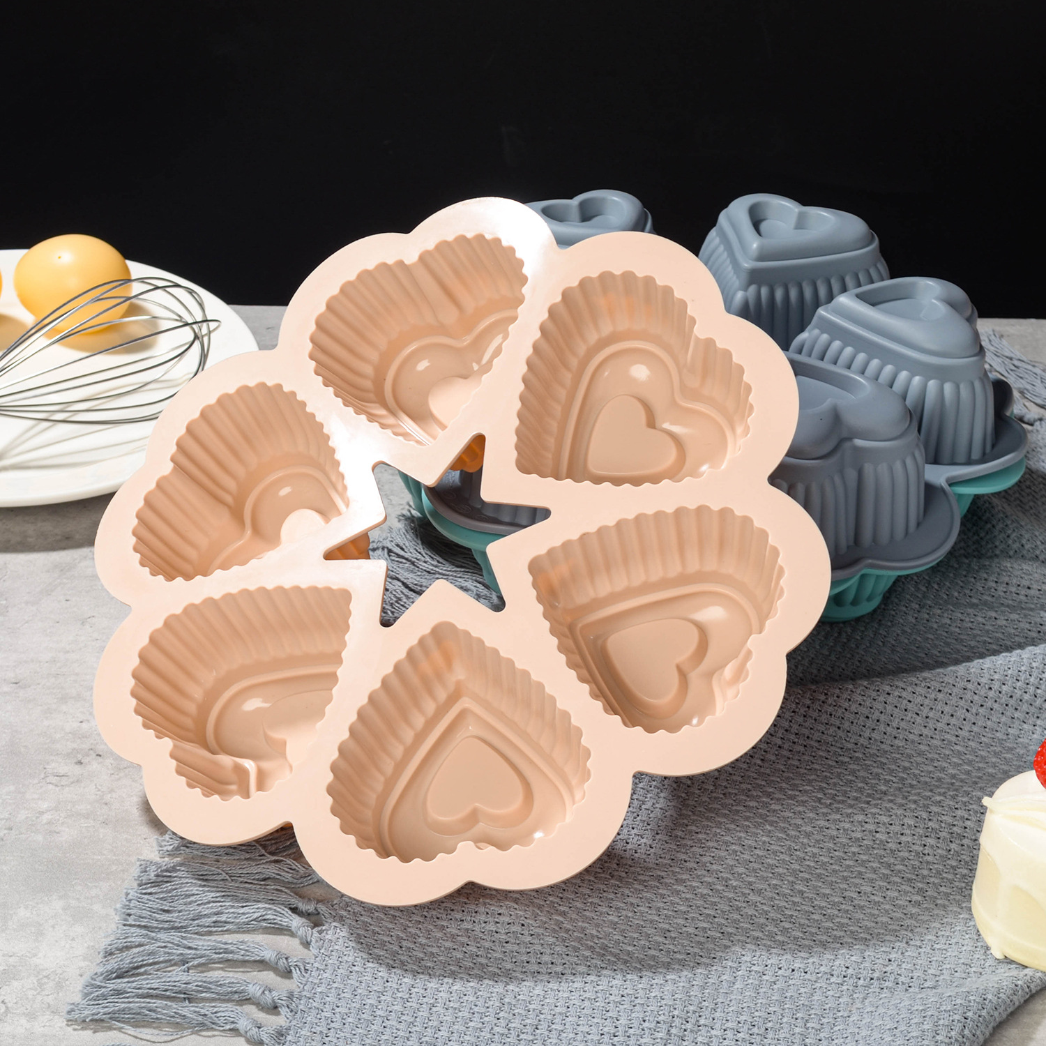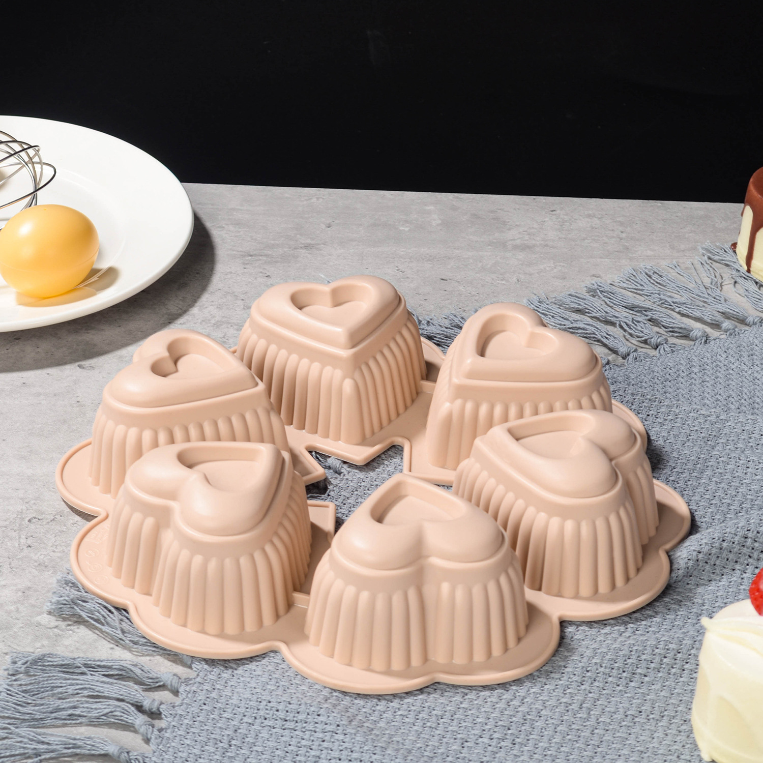 gray six-hole heart-shaped baking pan