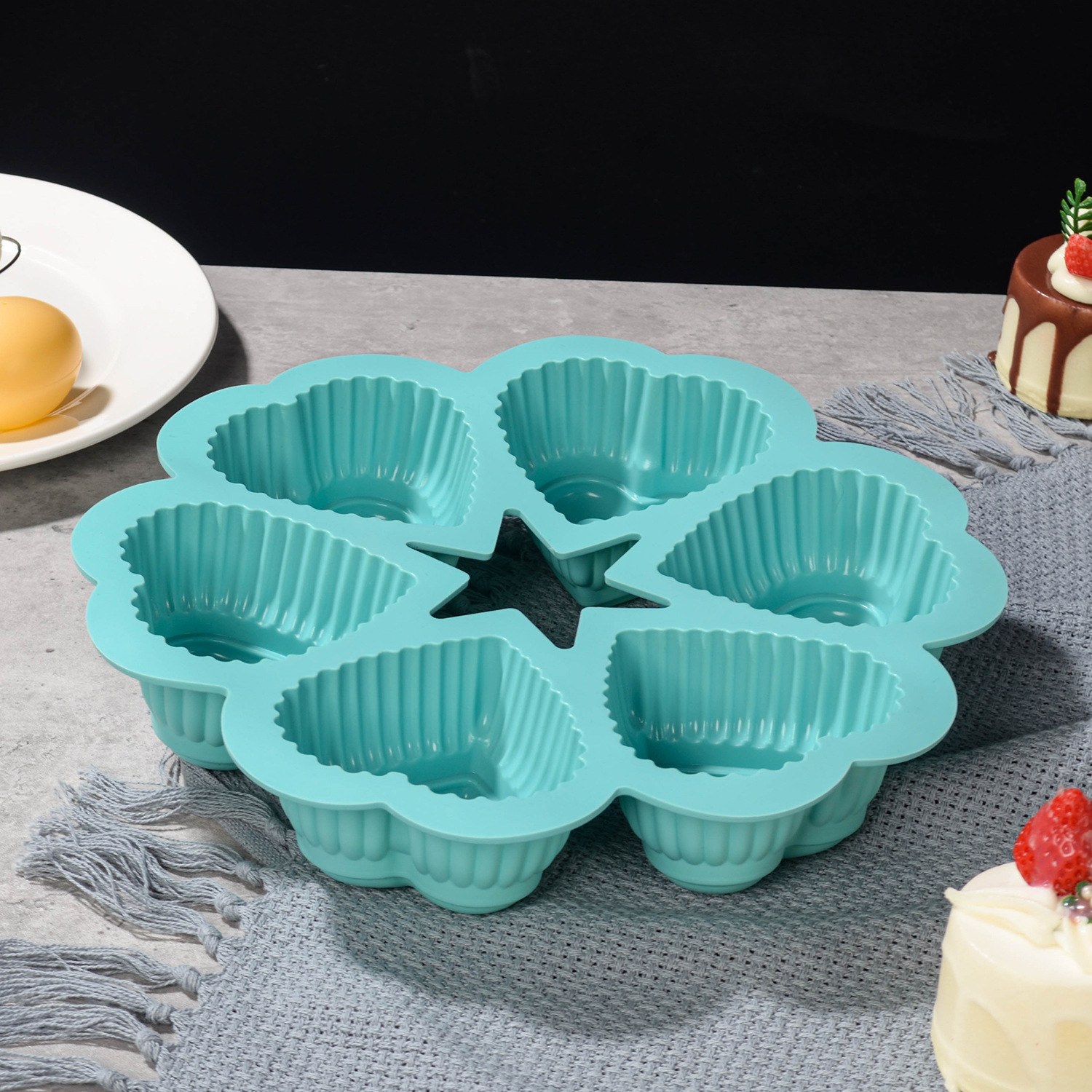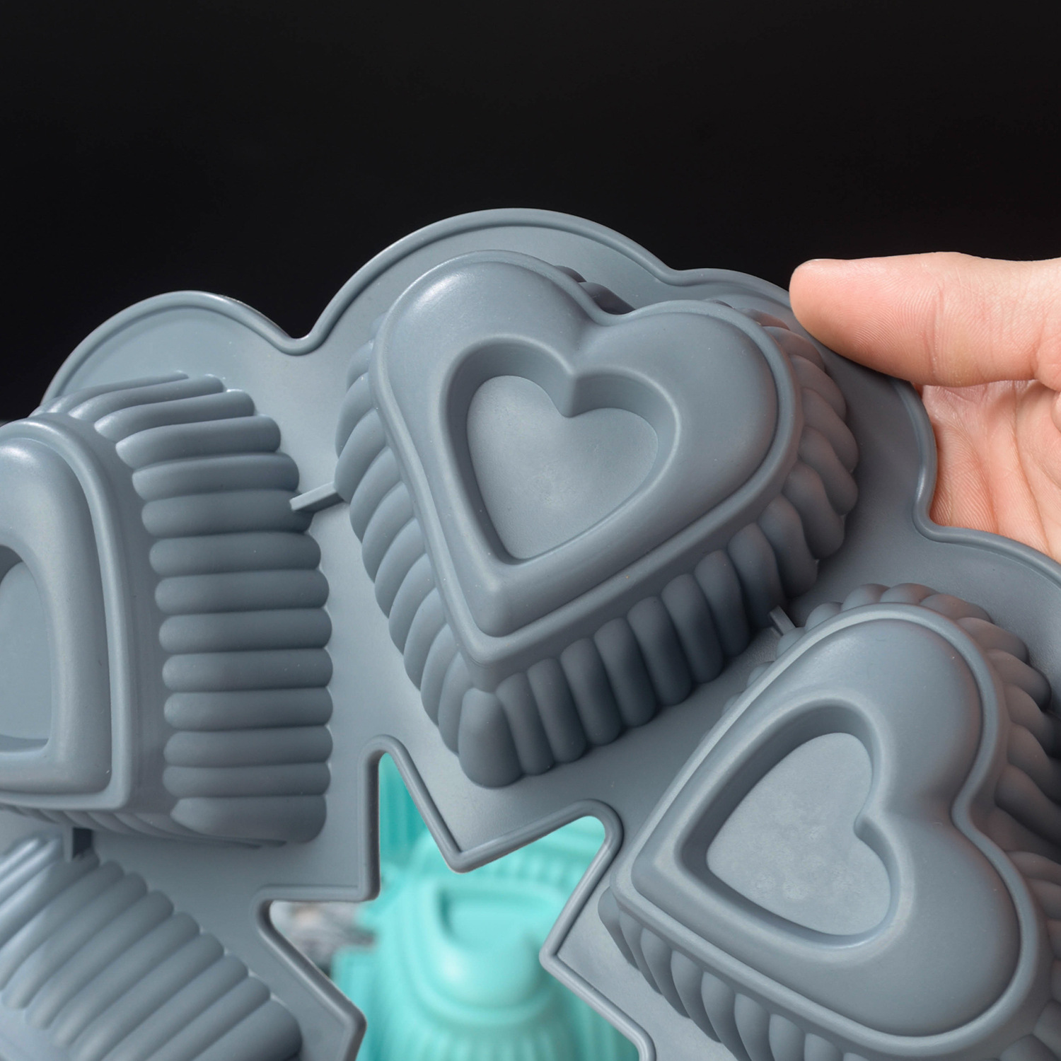 green six-hole heart-shaped baking pan
