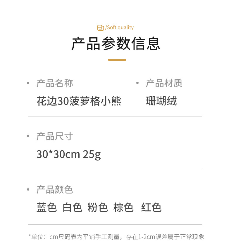 item no.: lace 30 pineapple plaid bear