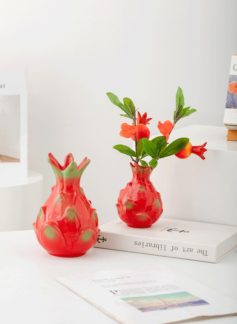 fruit vase, dragon fruit design, style included (red)