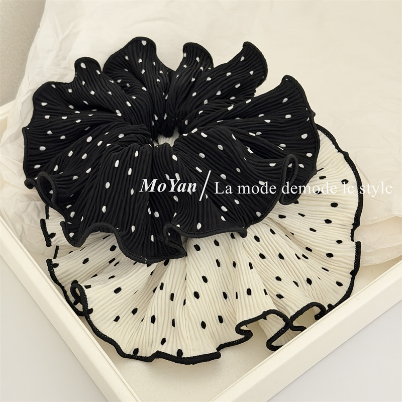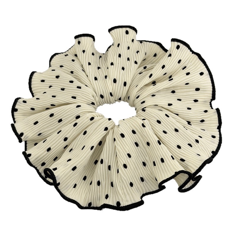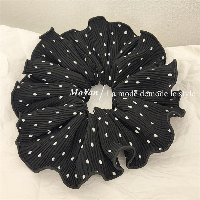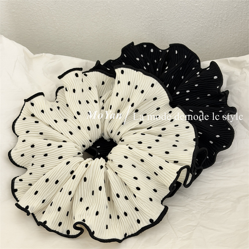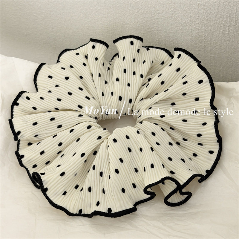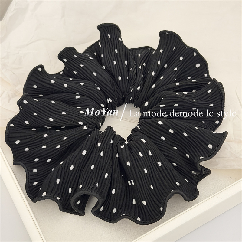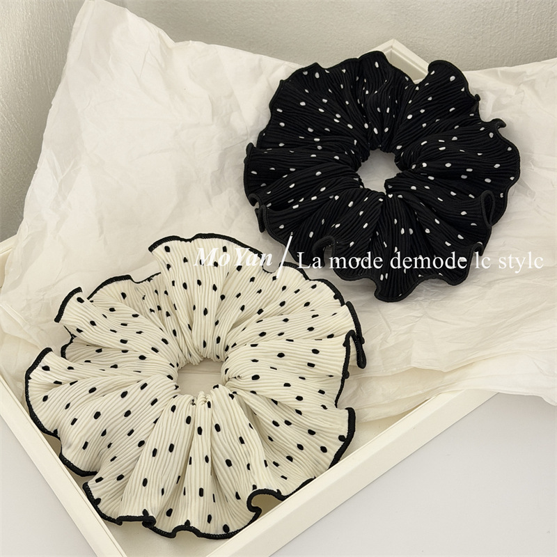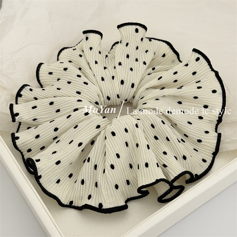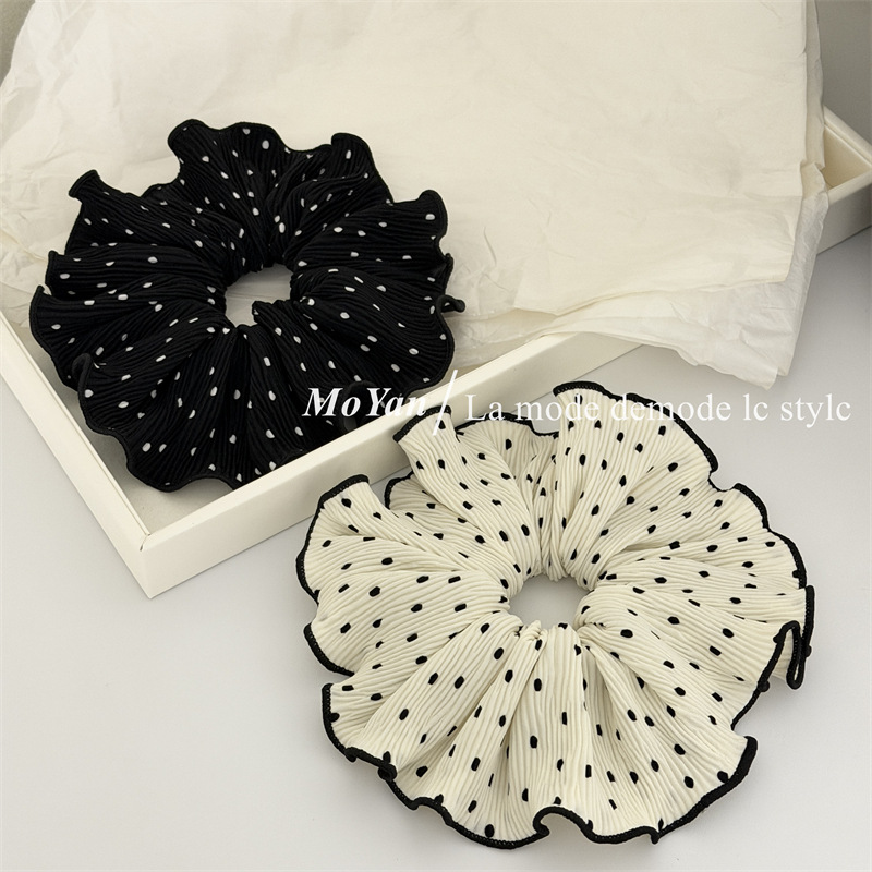 korean-style gentle polka dot large intestine hair ring temperament pleated internet-famous hair band tie-up hair head rope bun rubber hand with flower style