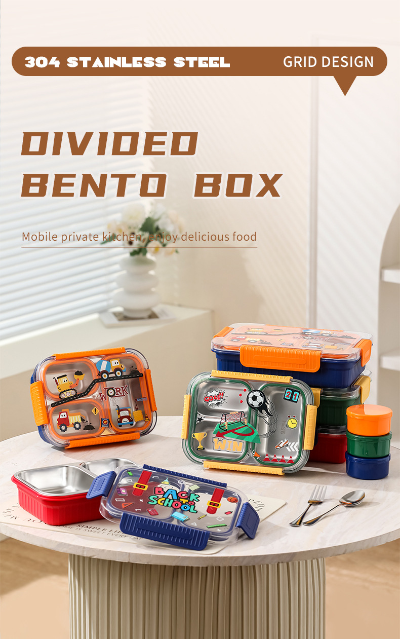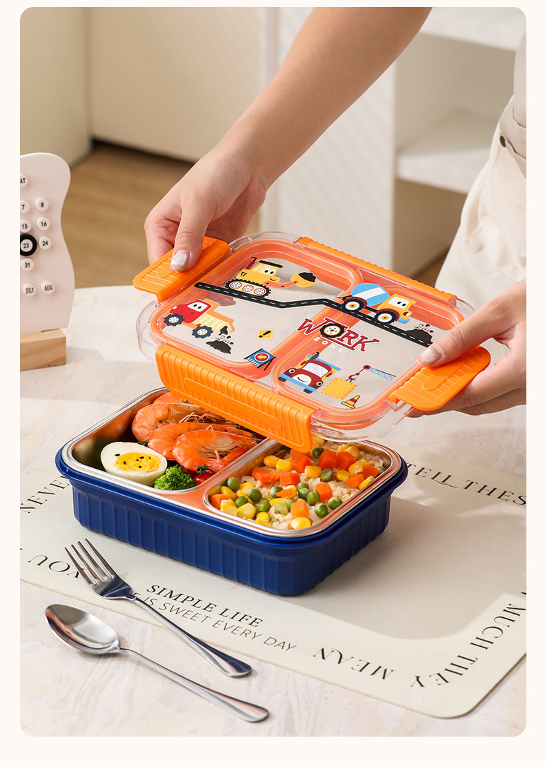 primary school students' sealed stainless steel lunch box cross-border hot selling children's bento box office workers' compartmented high-temperature resistant lunch box