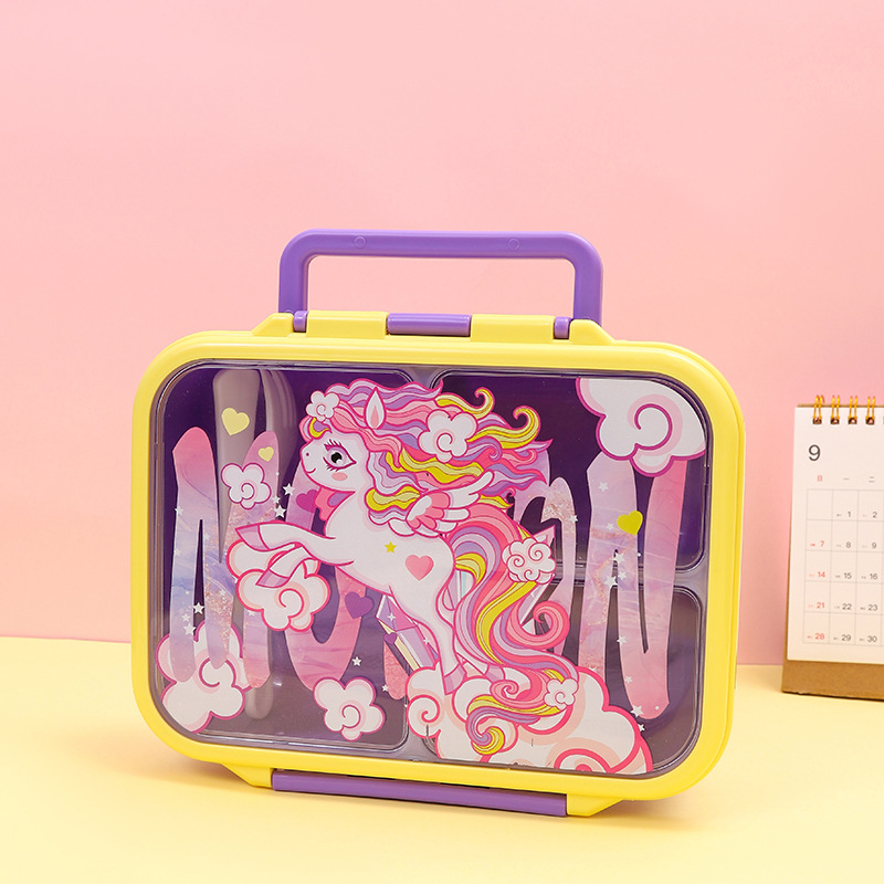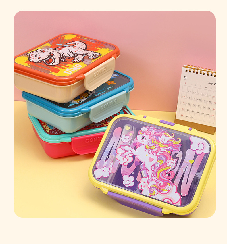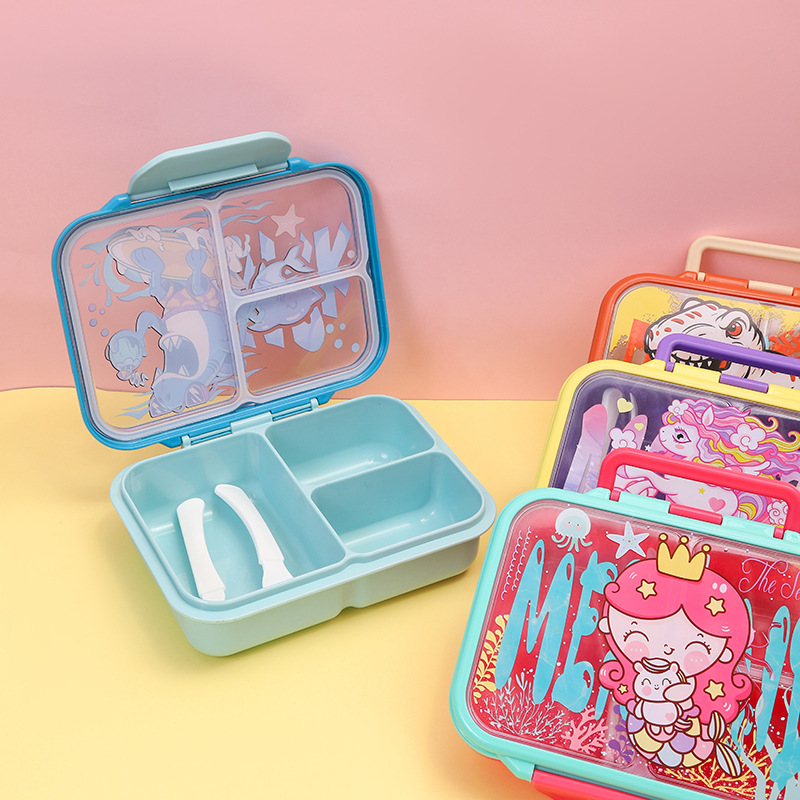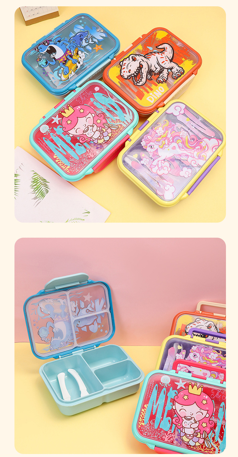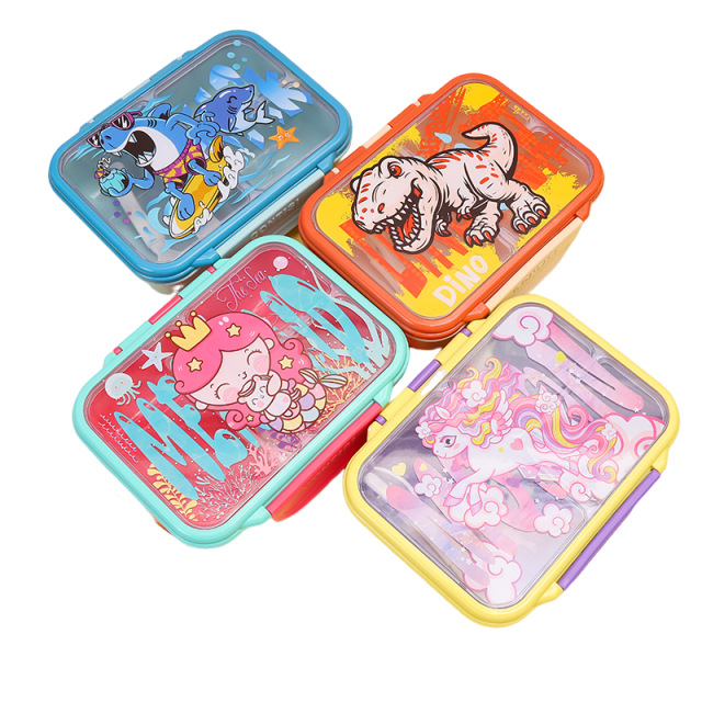 cross-border new arrival food-grade plastic lunch box children's cartoon cute lunch box student compartmentalized sealed bento box