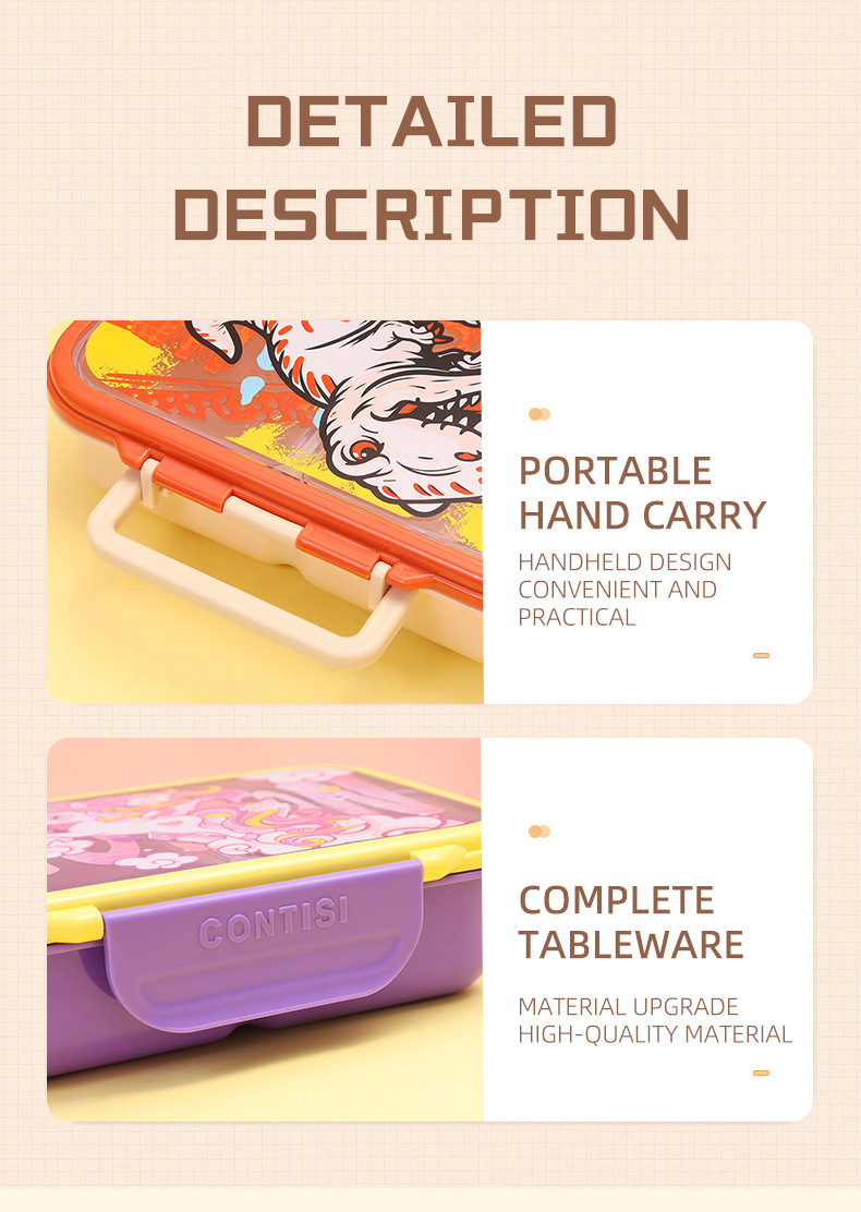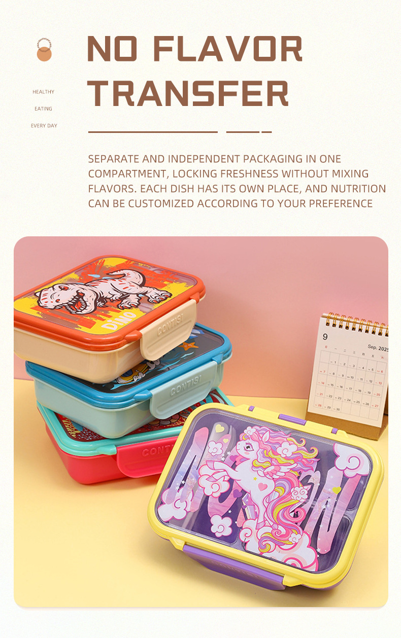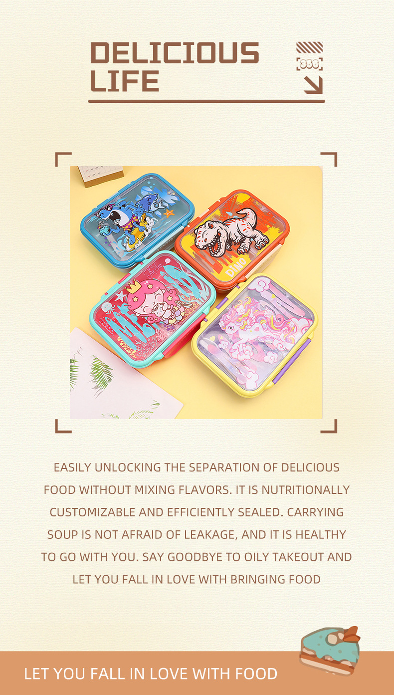cross-border new arrival food-grade plastic lunch box children's cartoon cute lunch box student compartmentalized sealed bento box