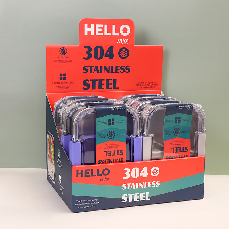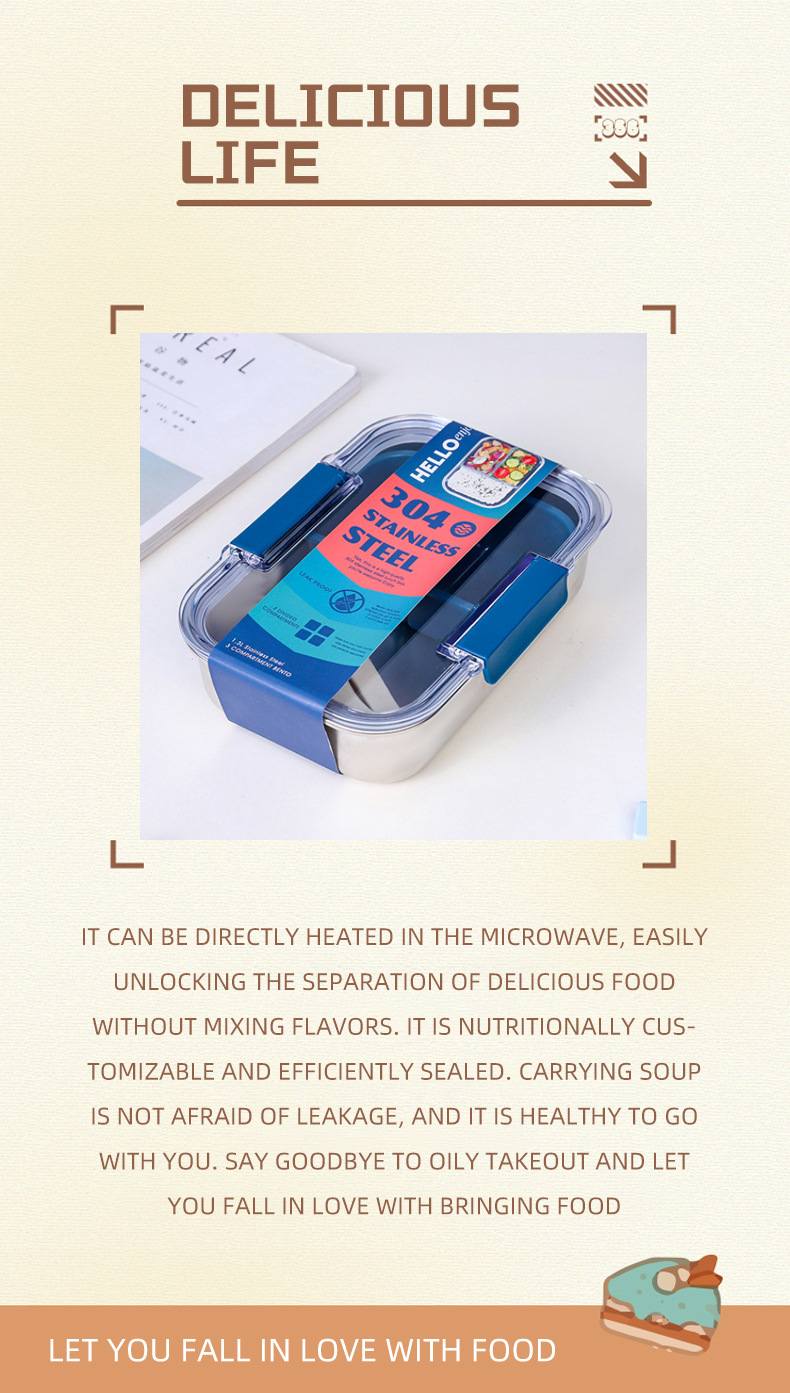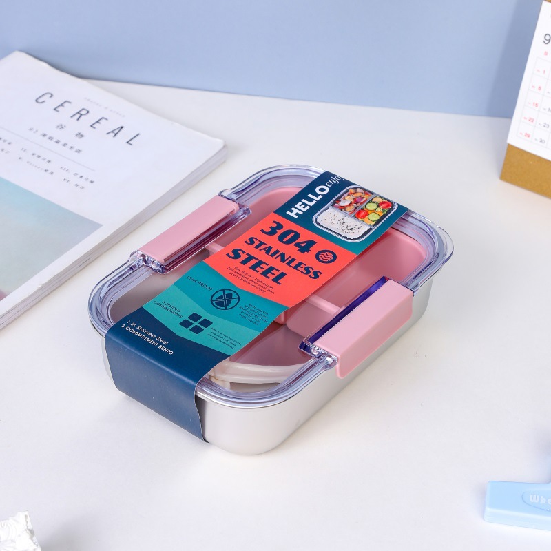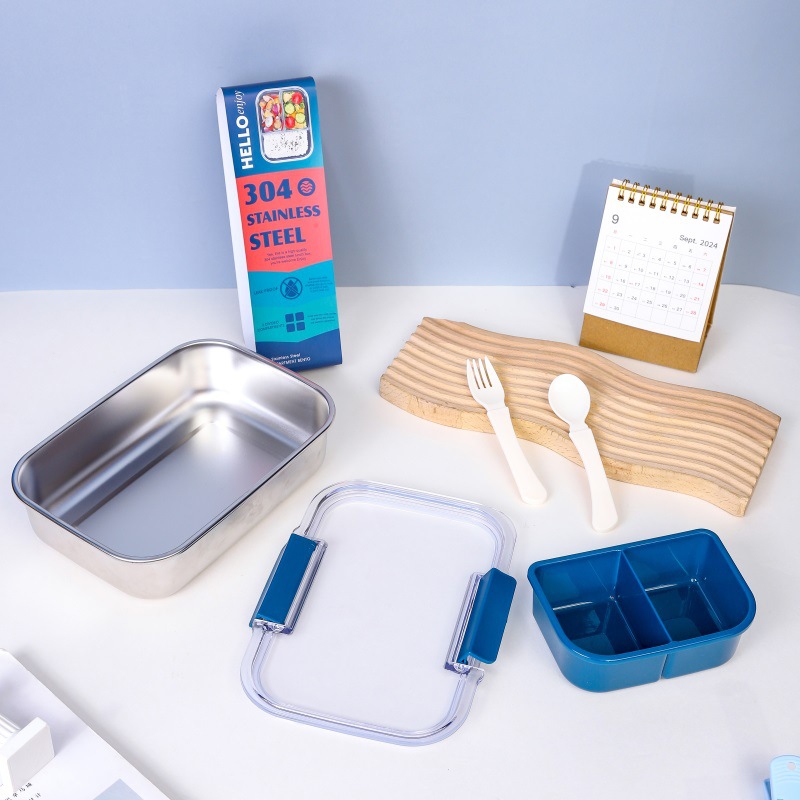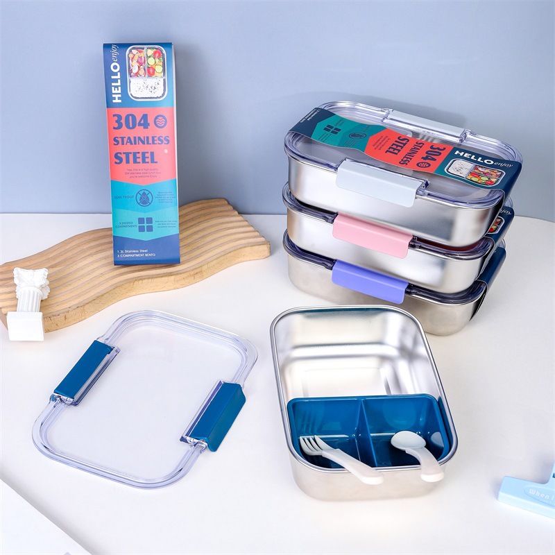 2025 new foreign trade style stainless steel divider lunch box wholesale convenient student office lunch box