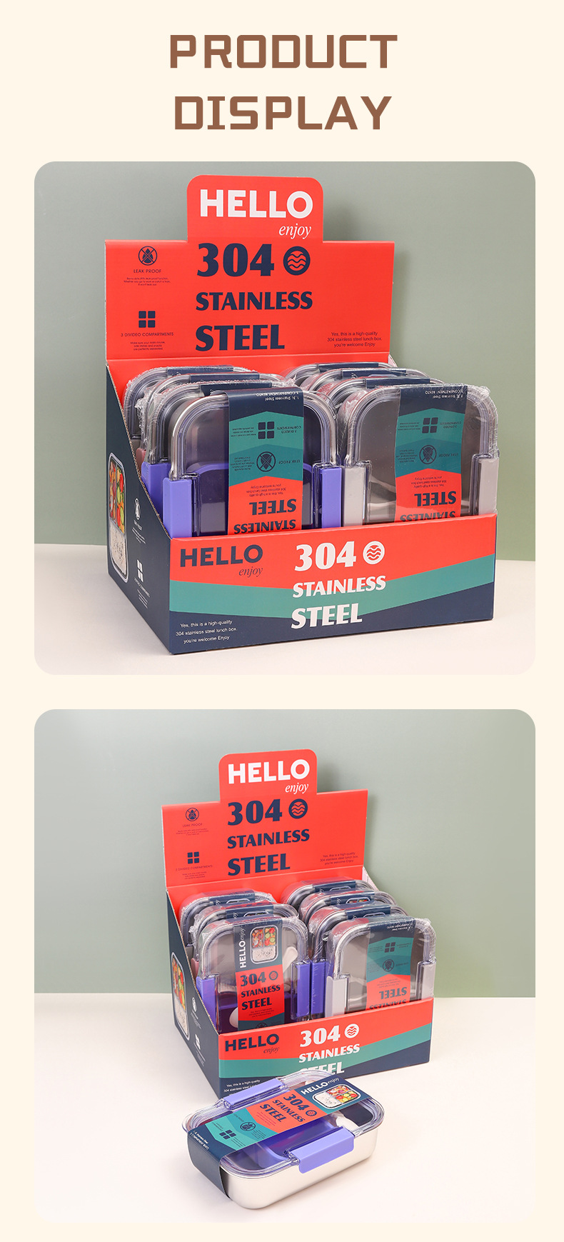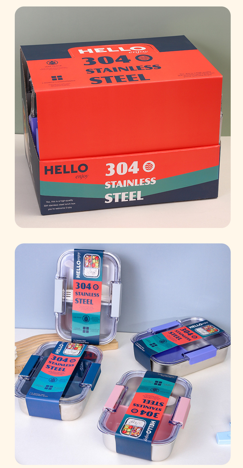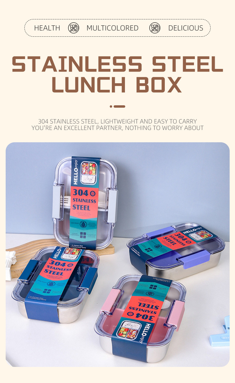 2025 new foreign trade style stainless steel divider lunch box wholesale convenient student office lunch box