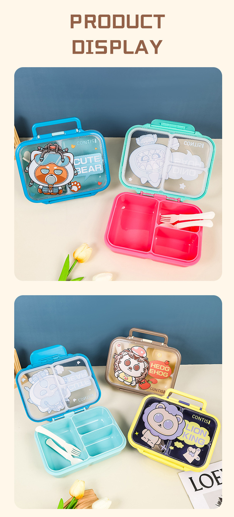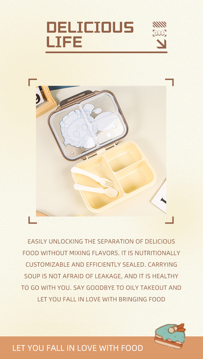 factory direct supply cartoon cute large-capacity student lunch box bento box portable and versatile outdoor picnic lunch box