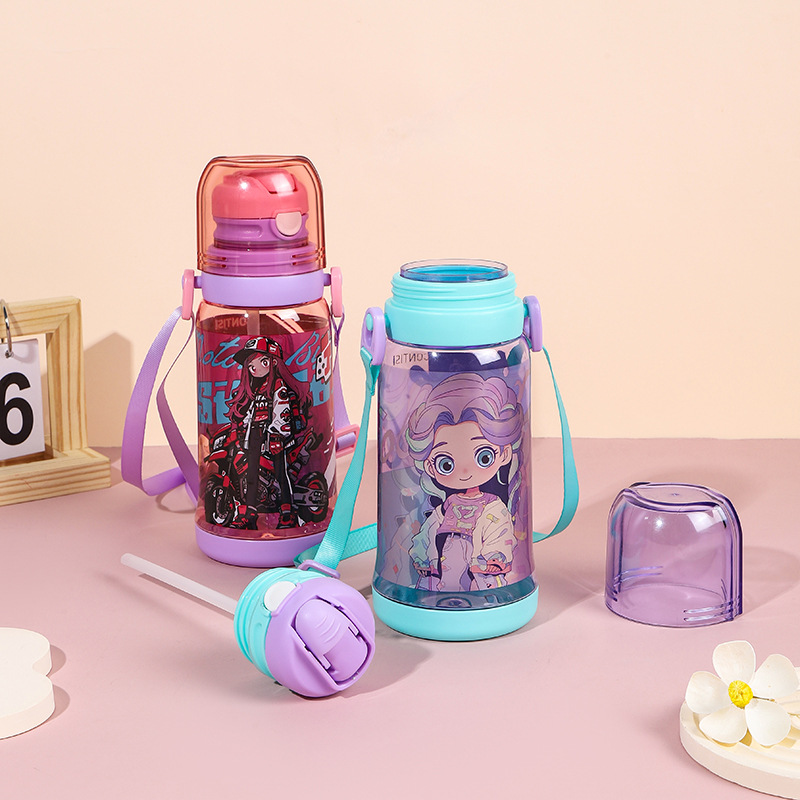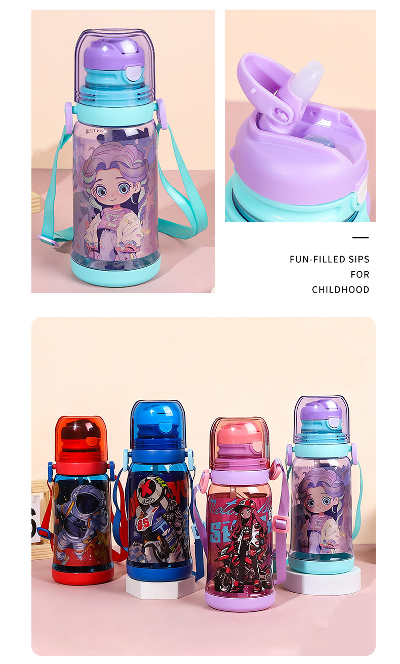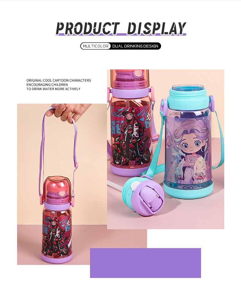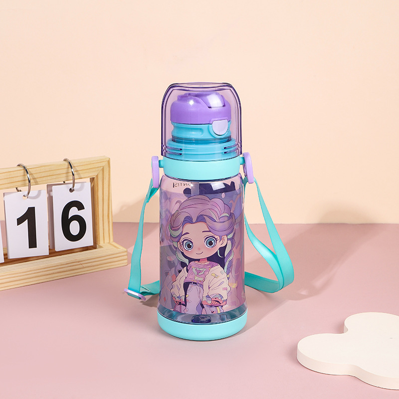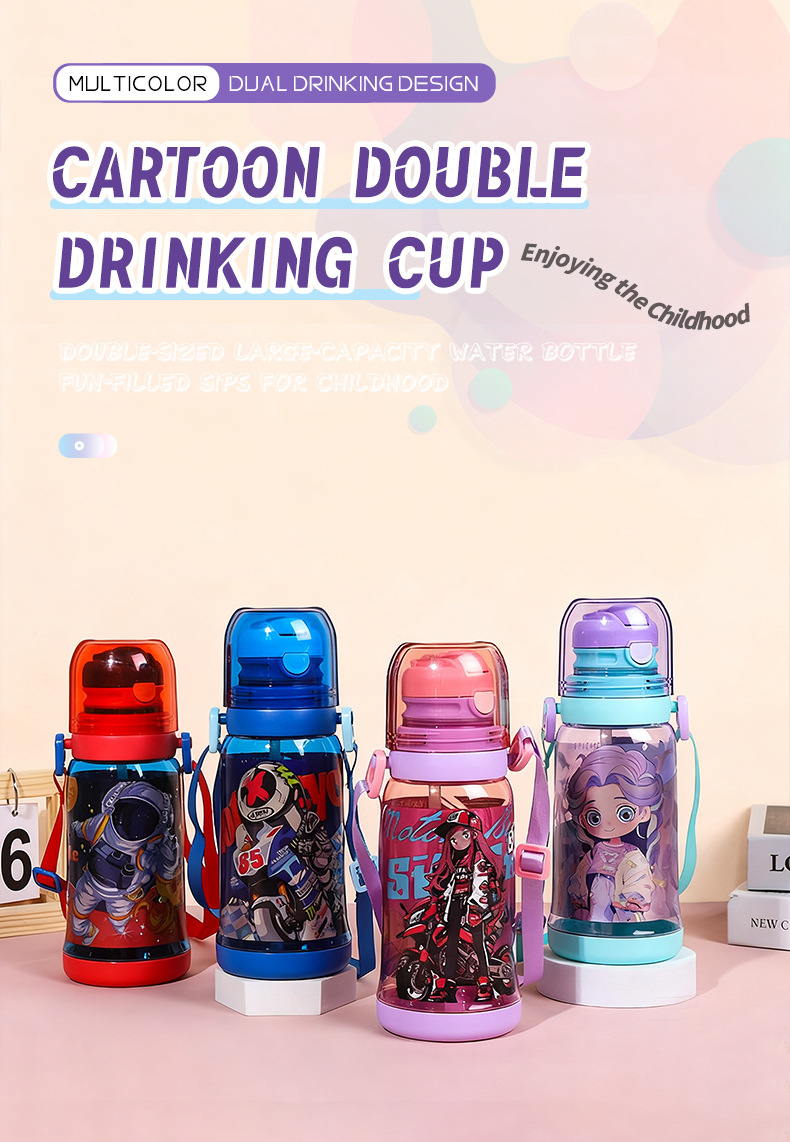 cross-border new arrival children's double-drinking strap cup convenient children's drinking cup cartoon cute student sports water bottle
