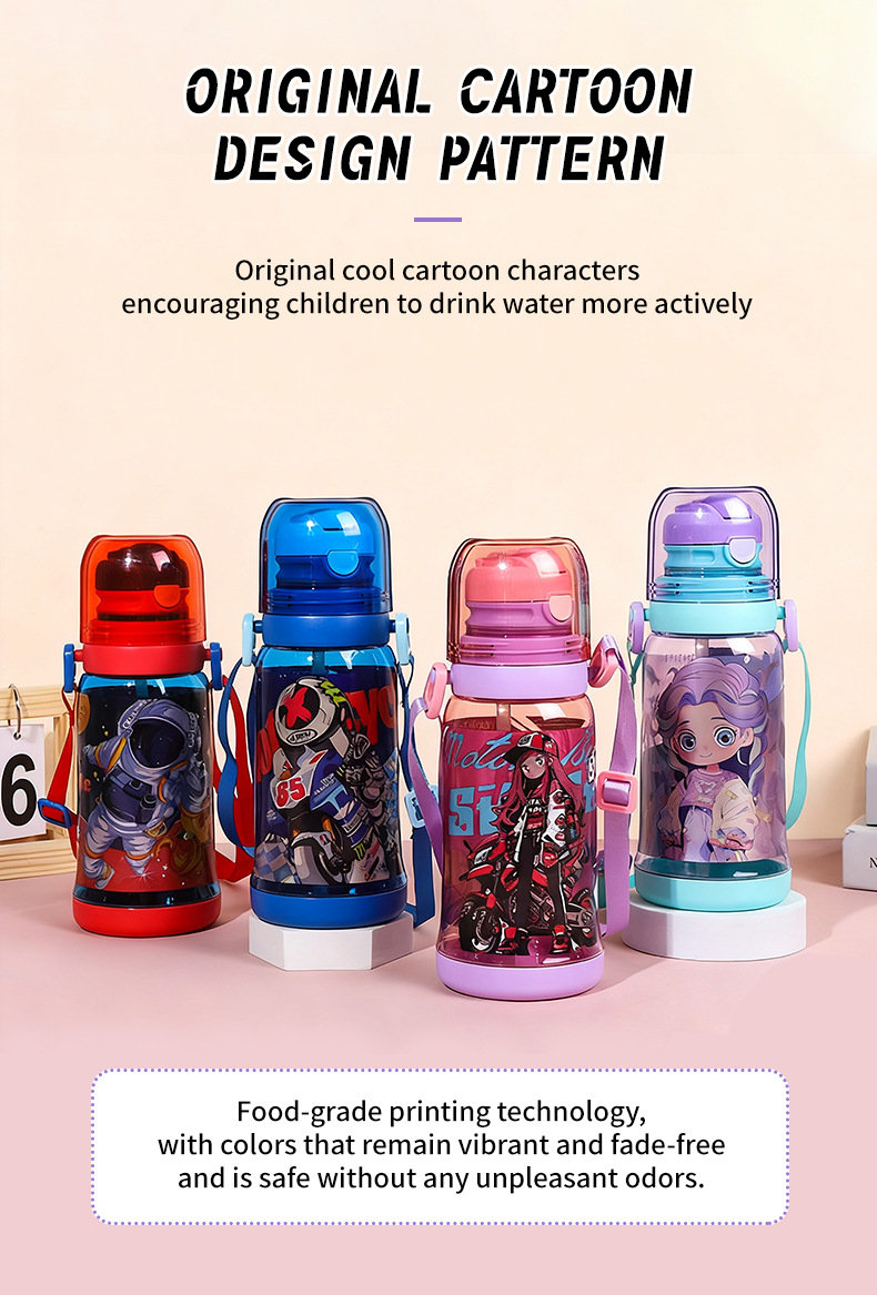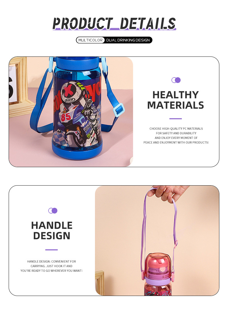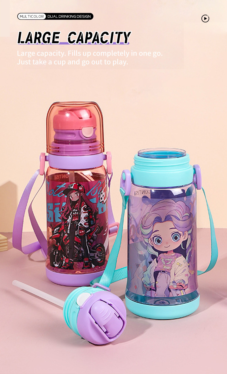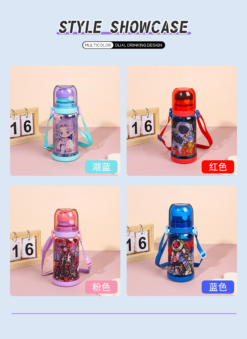 cross-border new arrival children's double-drinking strap cup convenient children's drinking cup cartoon cute student sports water bottle