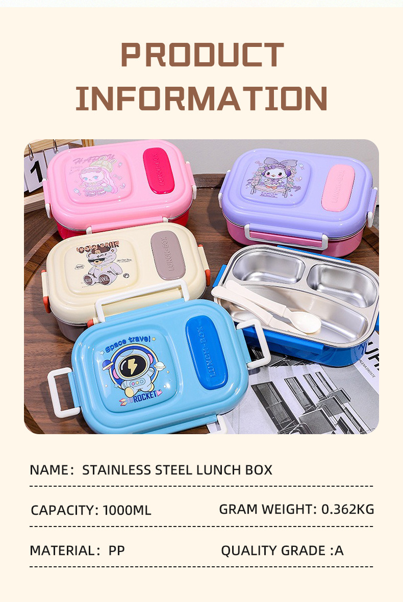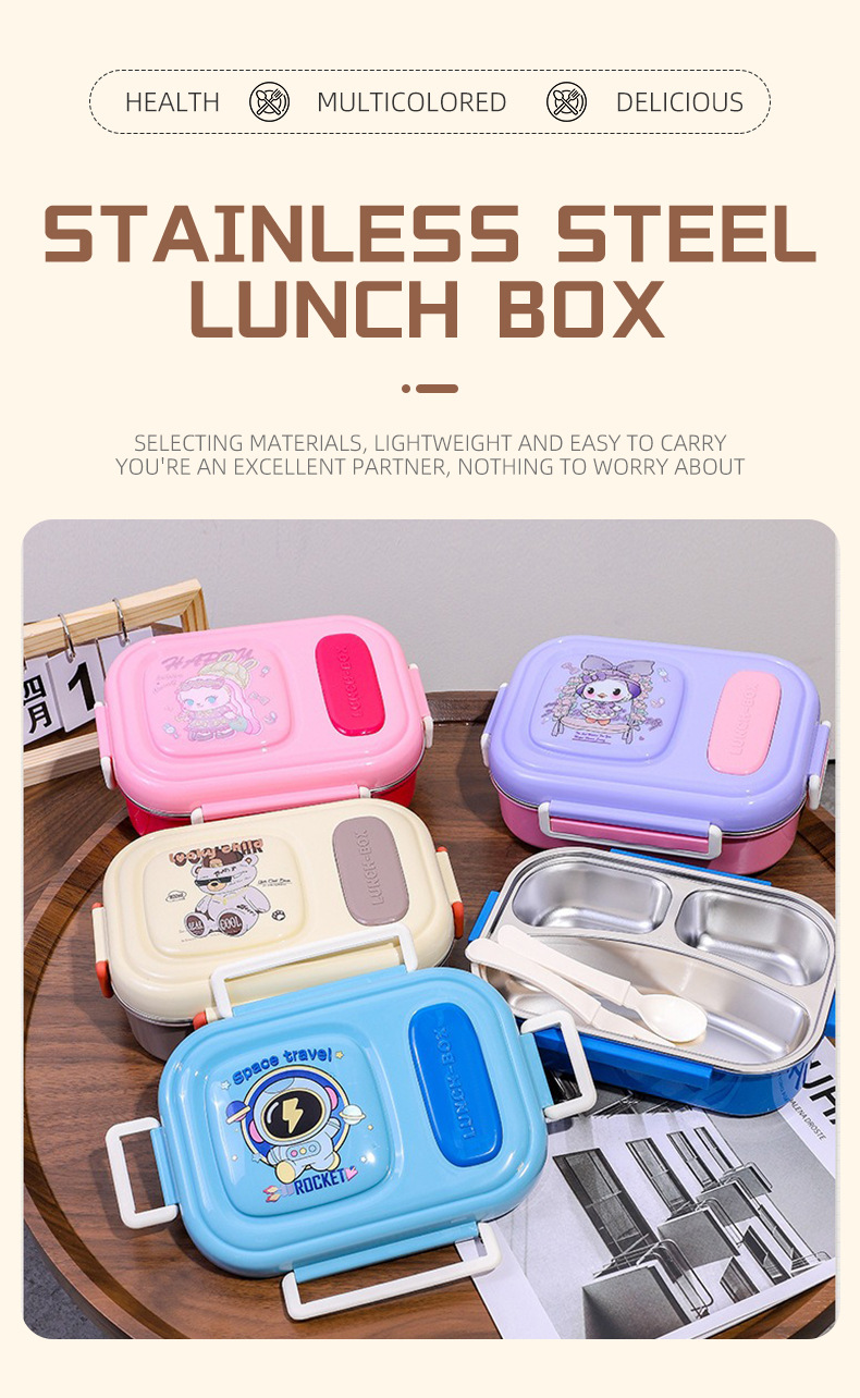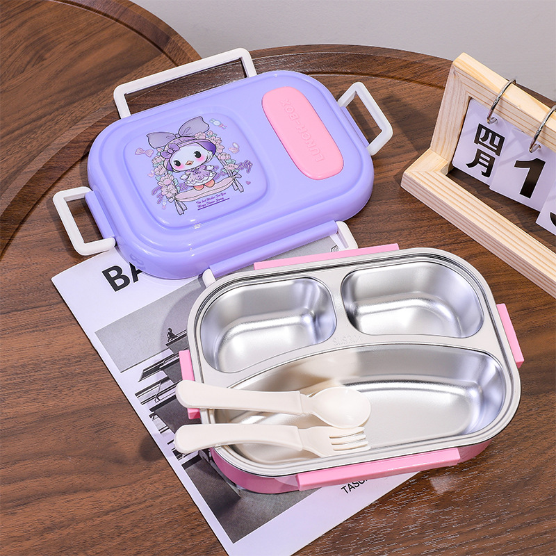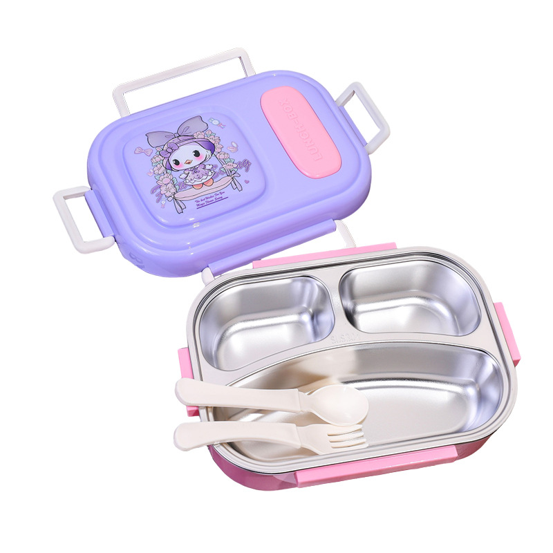 cartoon stainless steel lunch box for girls microwave-able office lunch box student canteen dormitory convenient sealed meal box