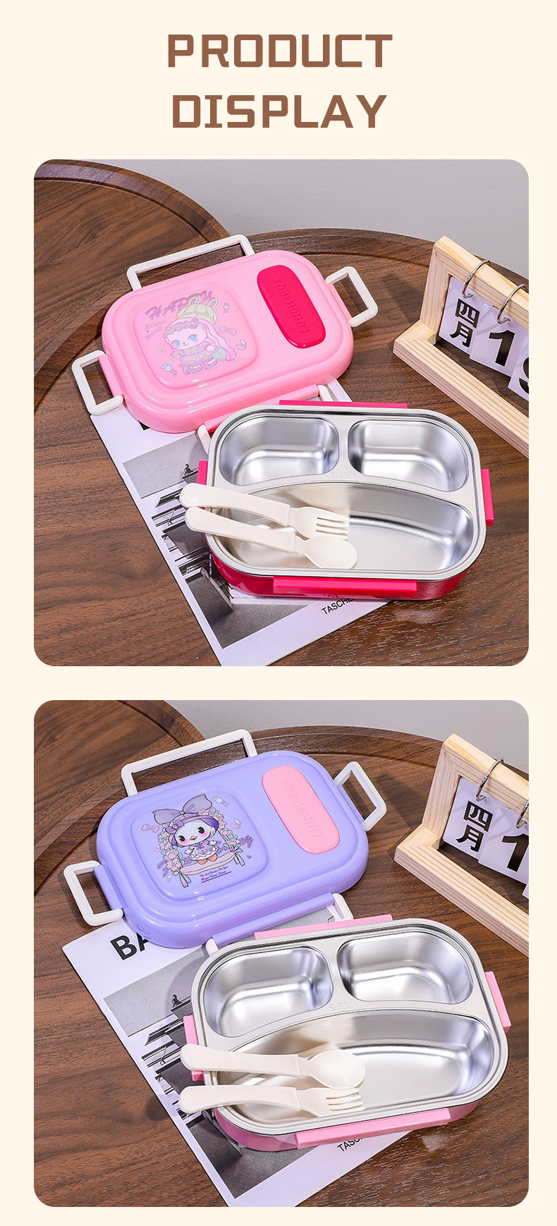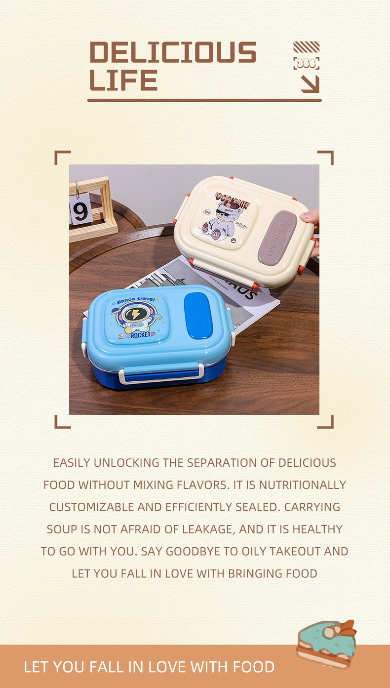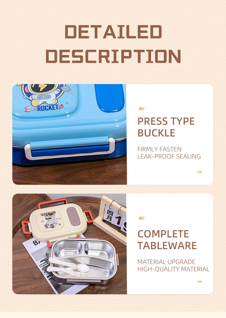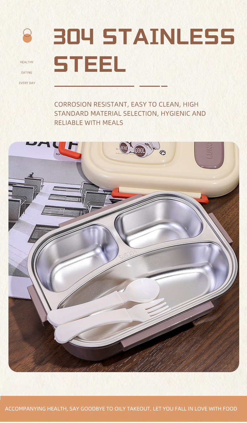 cartoon stainless steel lunch box for girls microwave-able office lunch box student canteen dormitory convenient sealed meal box