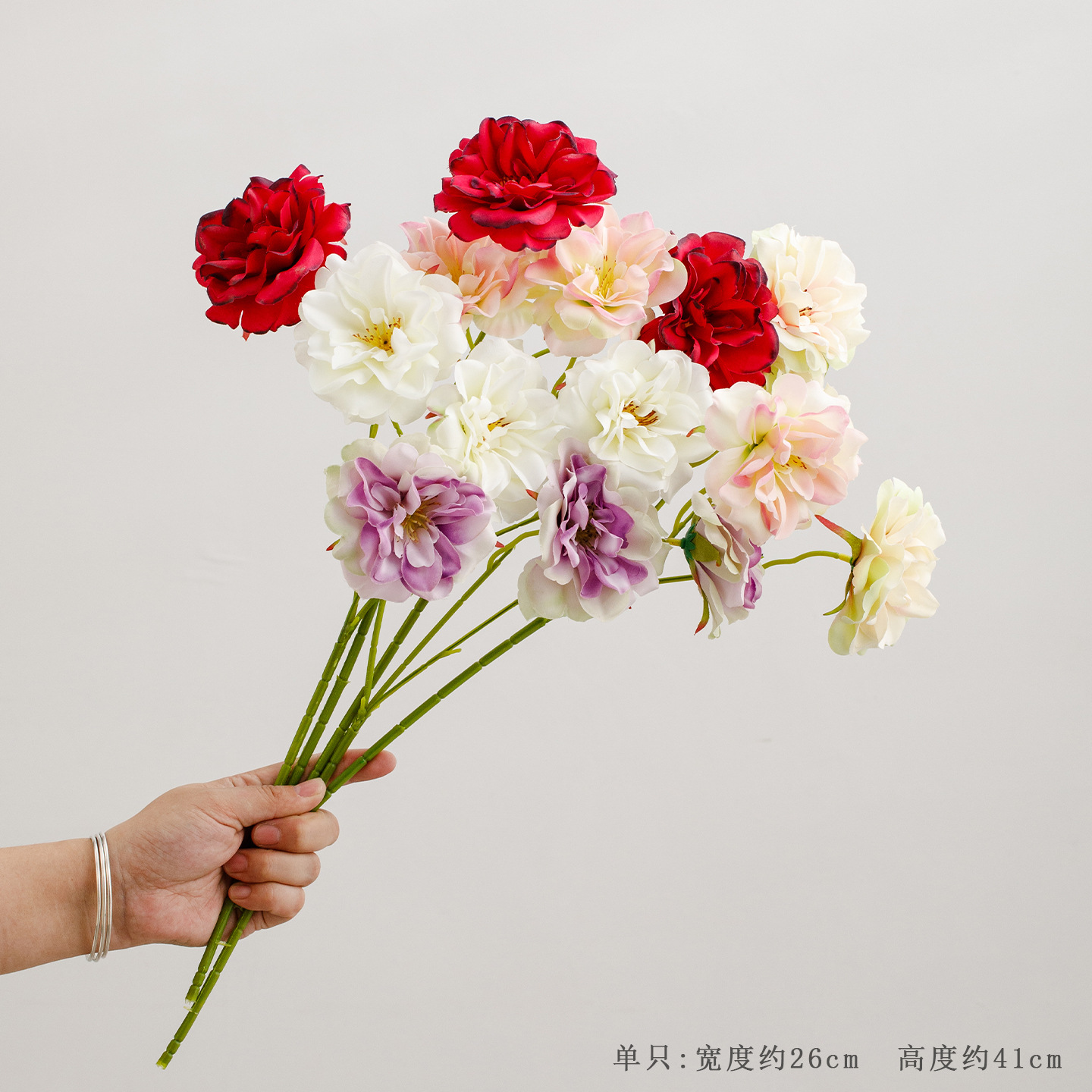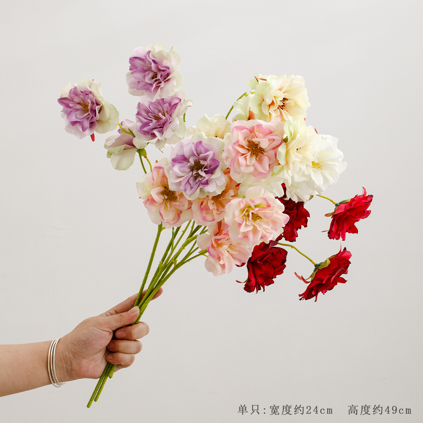 1 piece of 3-pronged rose flower (note the colors: white, green, red, pink, purple)