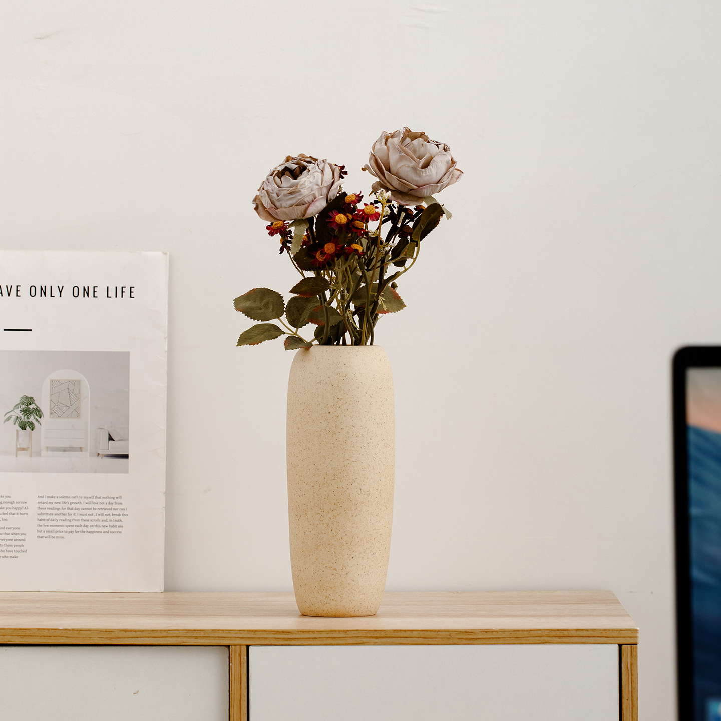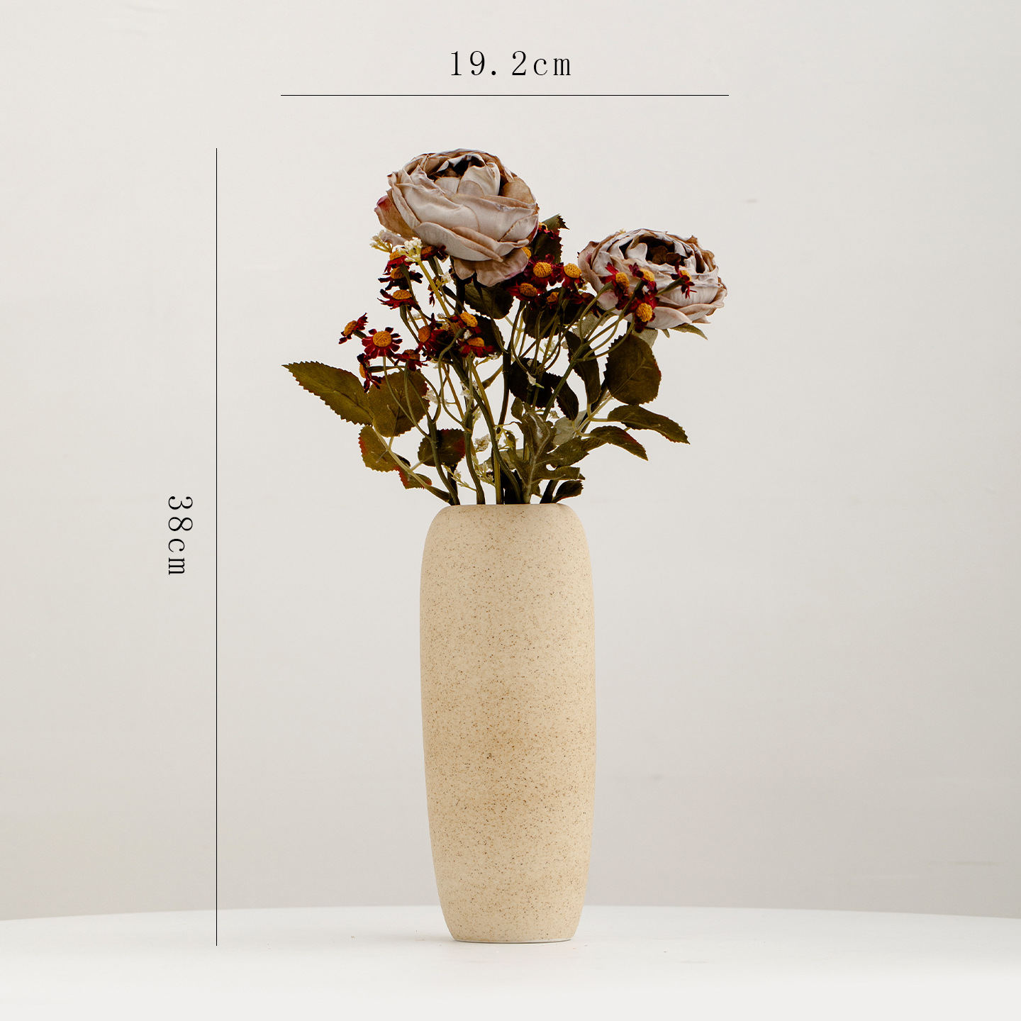 wan bai. medium size (beige with small dots) +2 stems of manta roses, 3 stems of autumn chamomile.