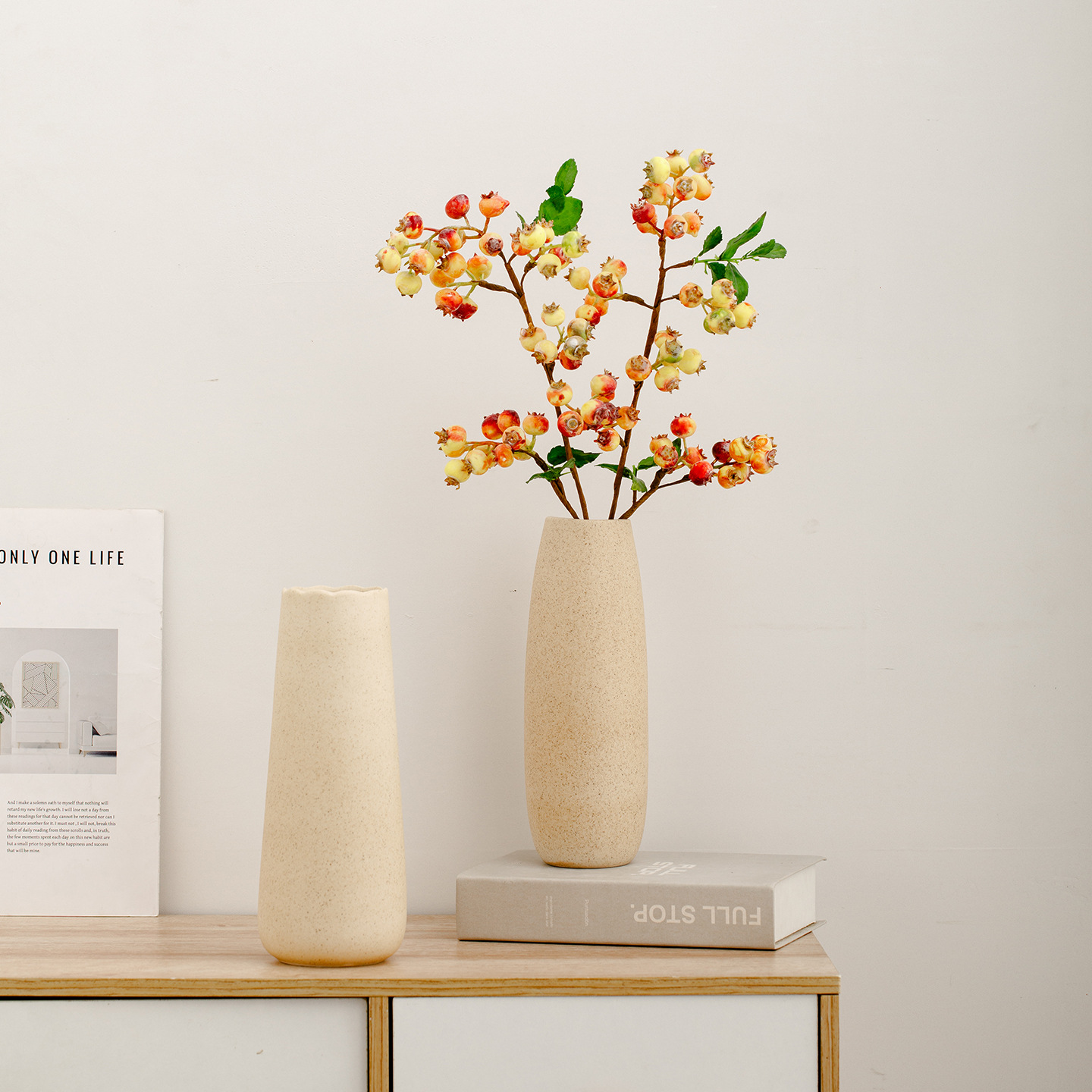 yingmeng. large style (beige dots) +2 artificial blueberries (orange)