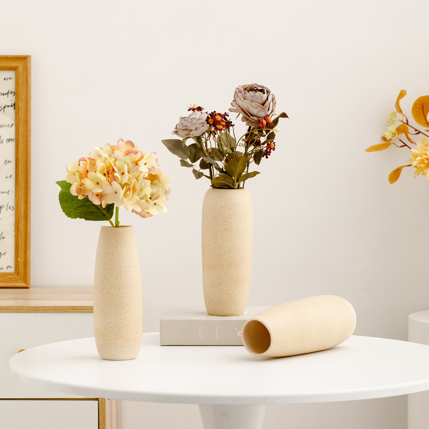 yingmeng. medium style (beige dots) +1 autumn-colored hydrangea (autumn yellow)