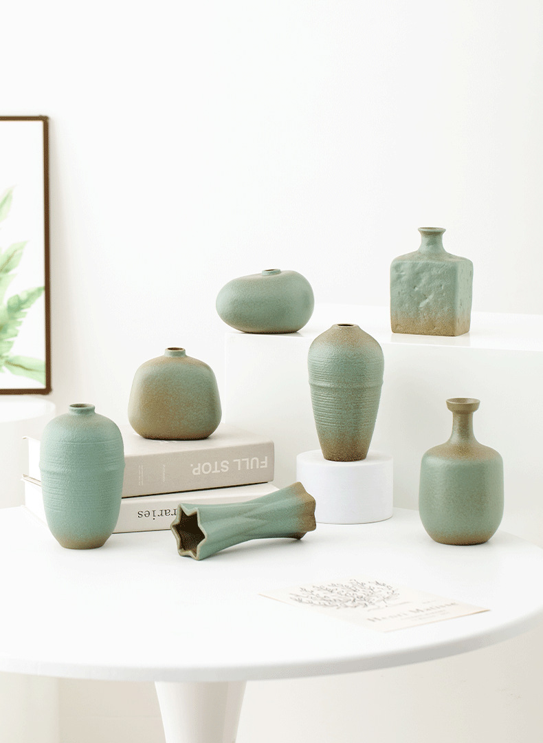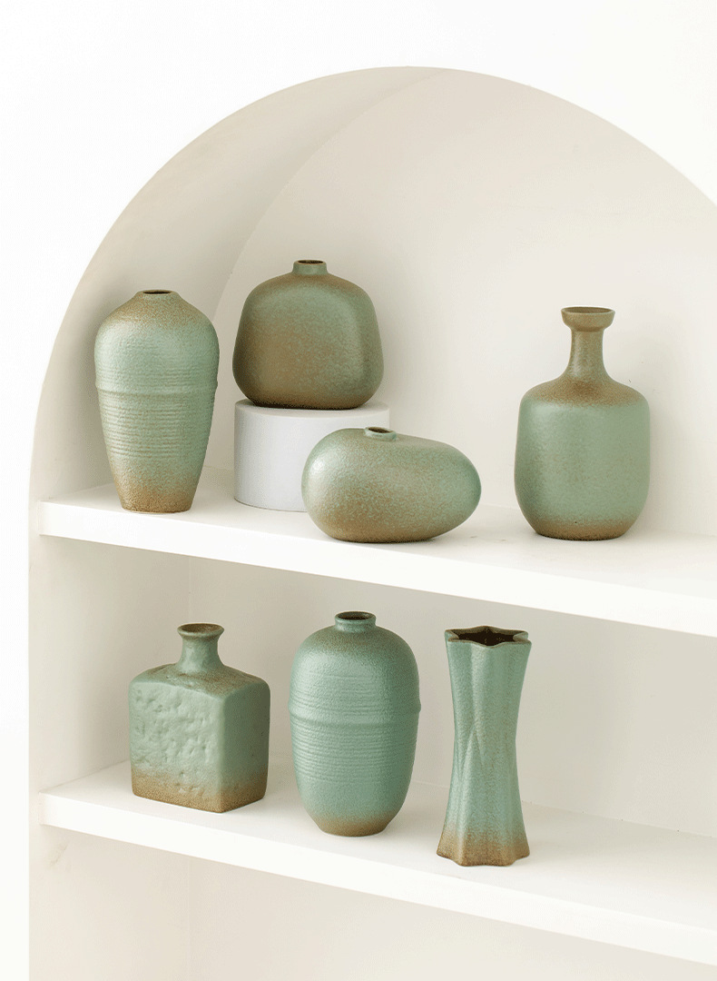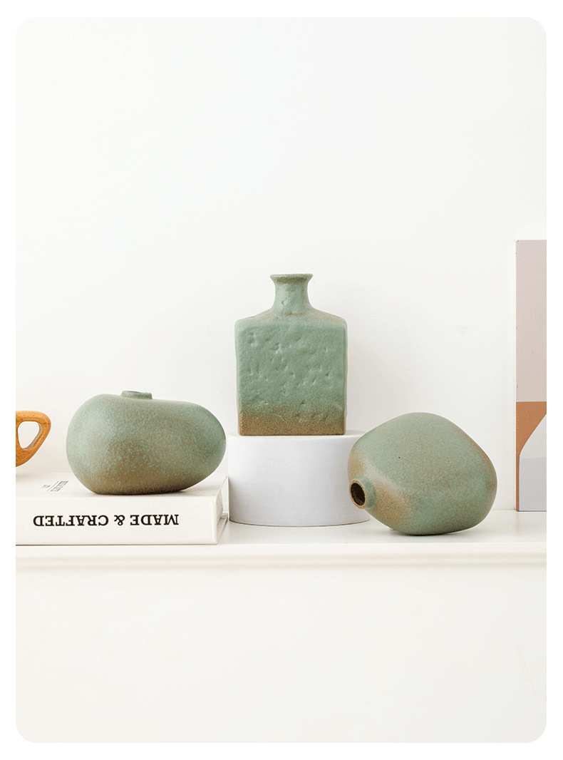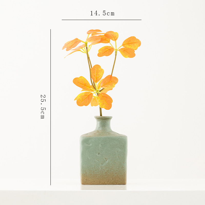 shi mu. small vase (retro green) +2 mini guanyin leaves (orange)