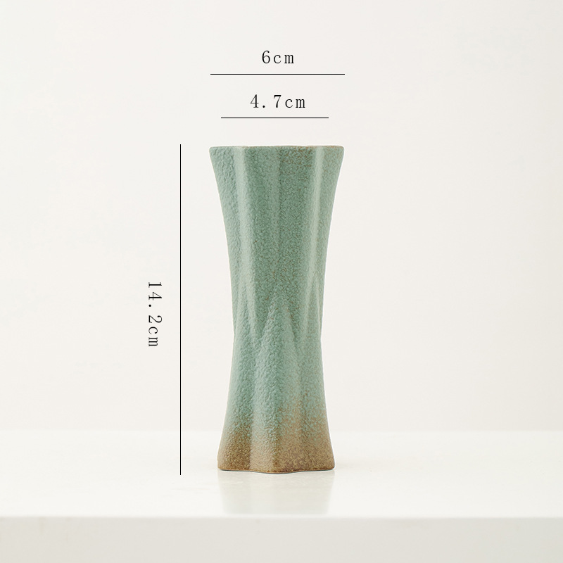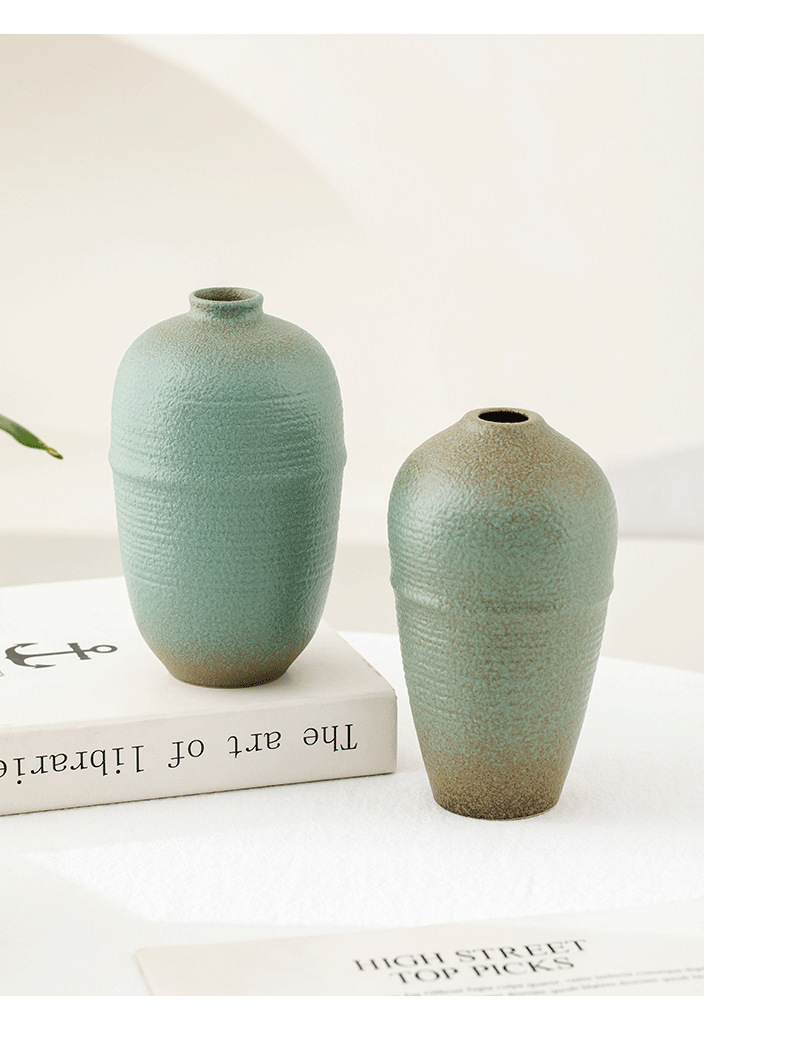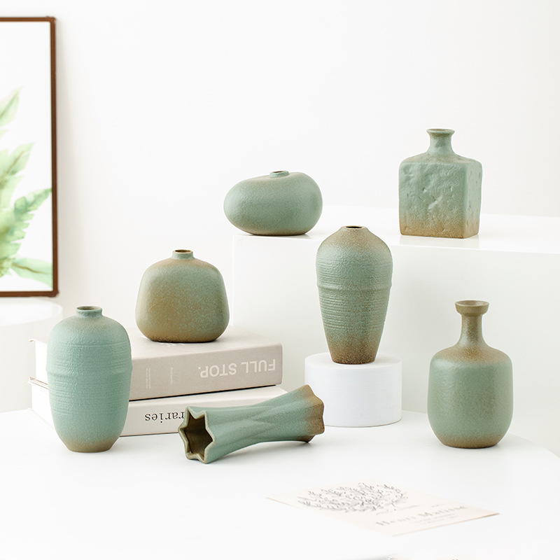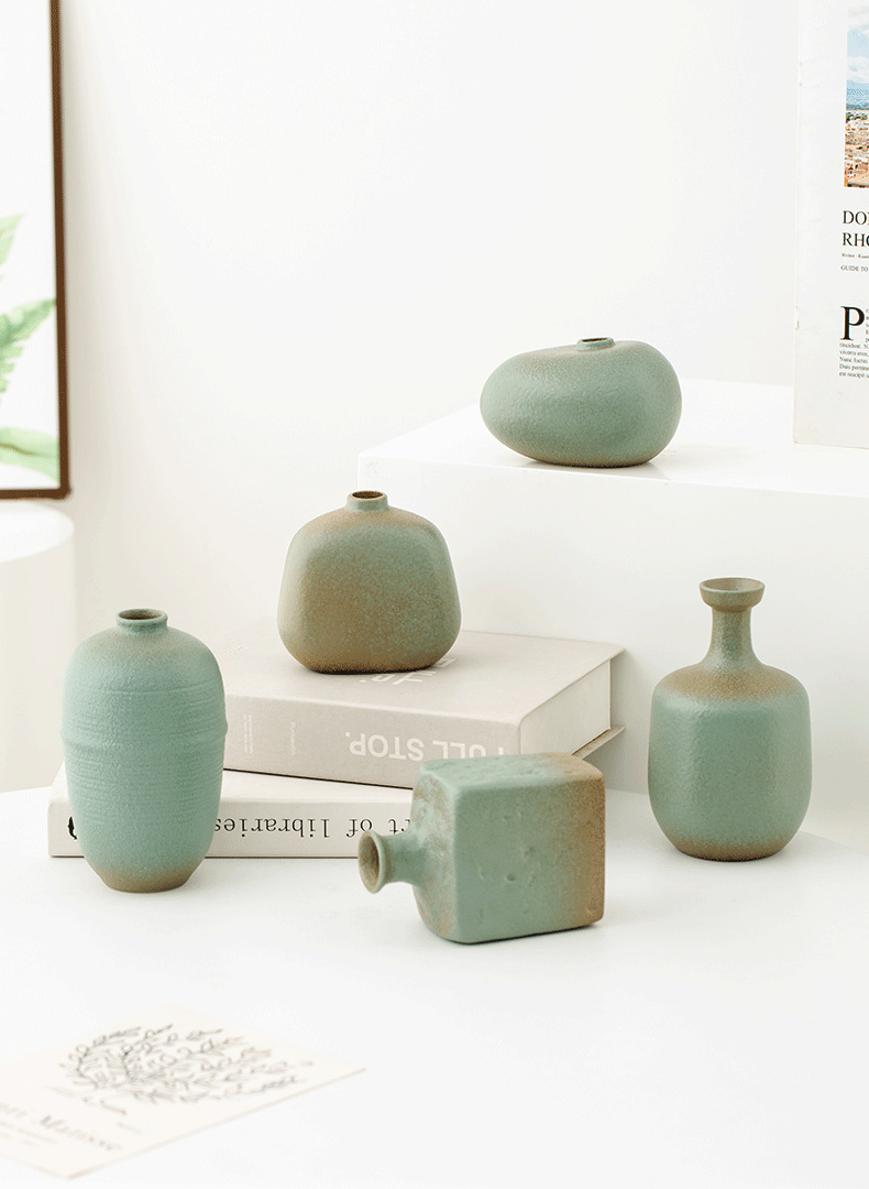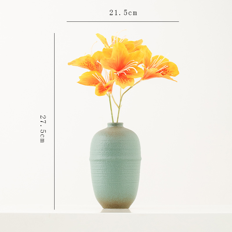 shi mu. small vase (retro green) +2 mini guanyin leaves (orange)