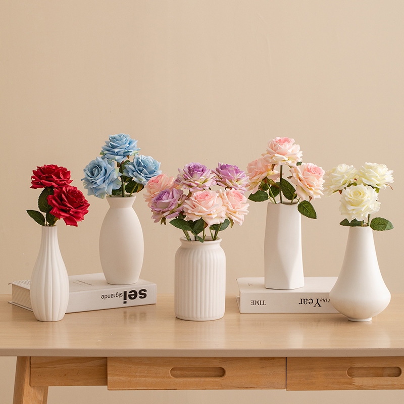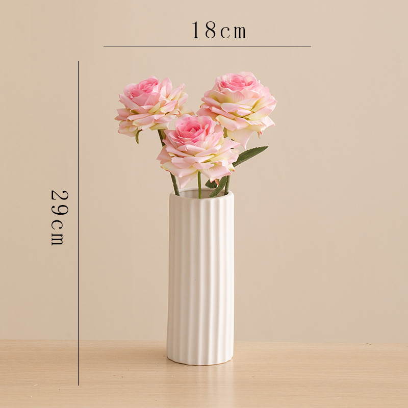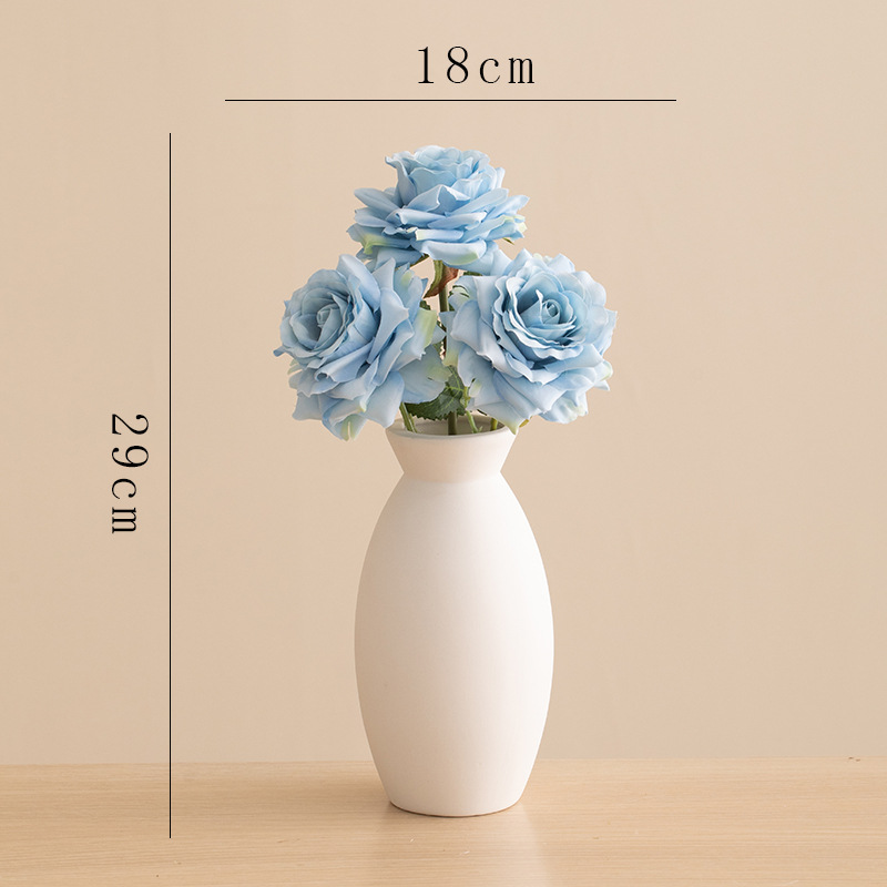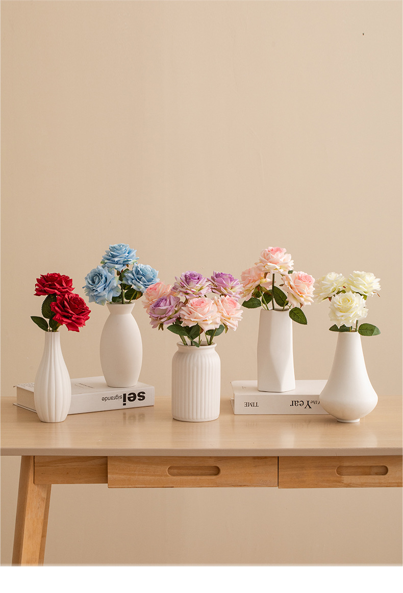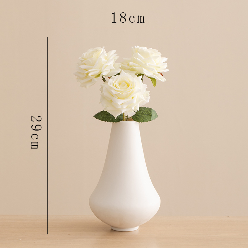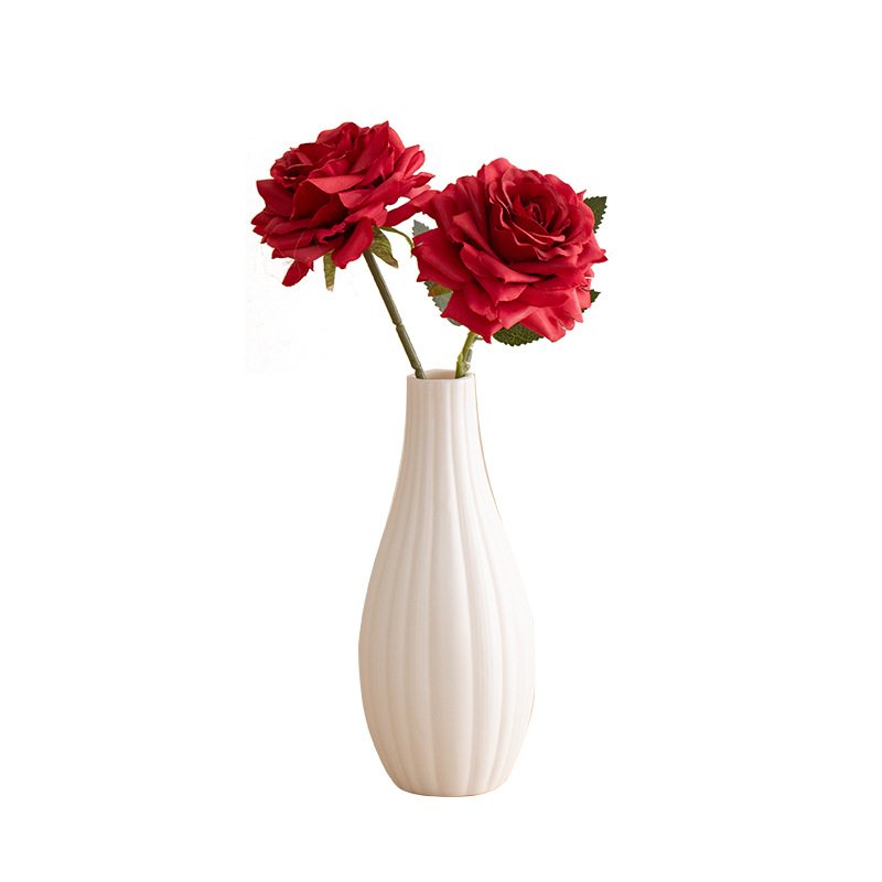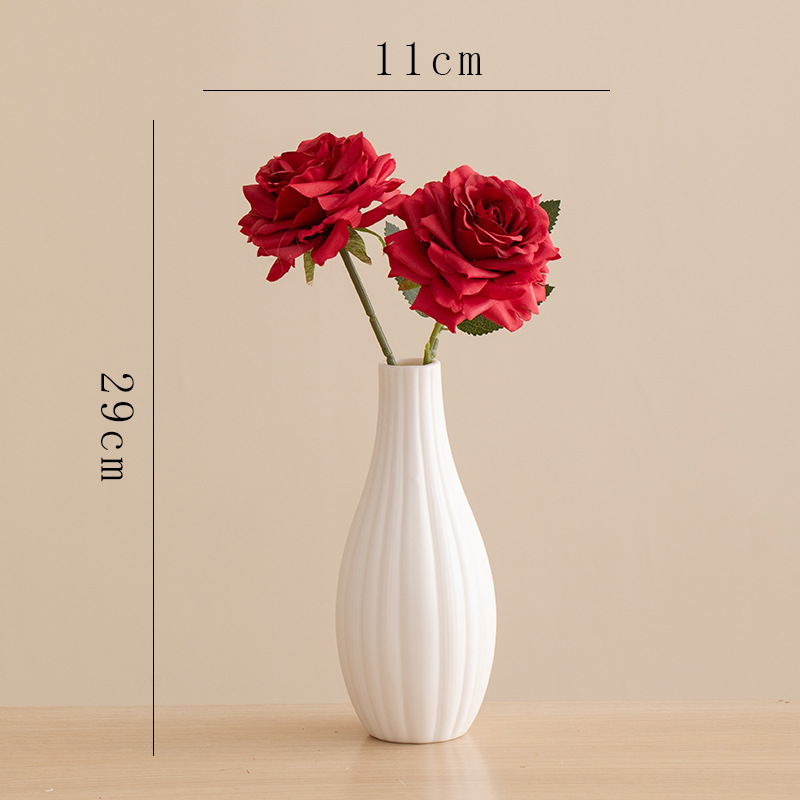 small holy-water vase (plain white) +2 time roses (red)