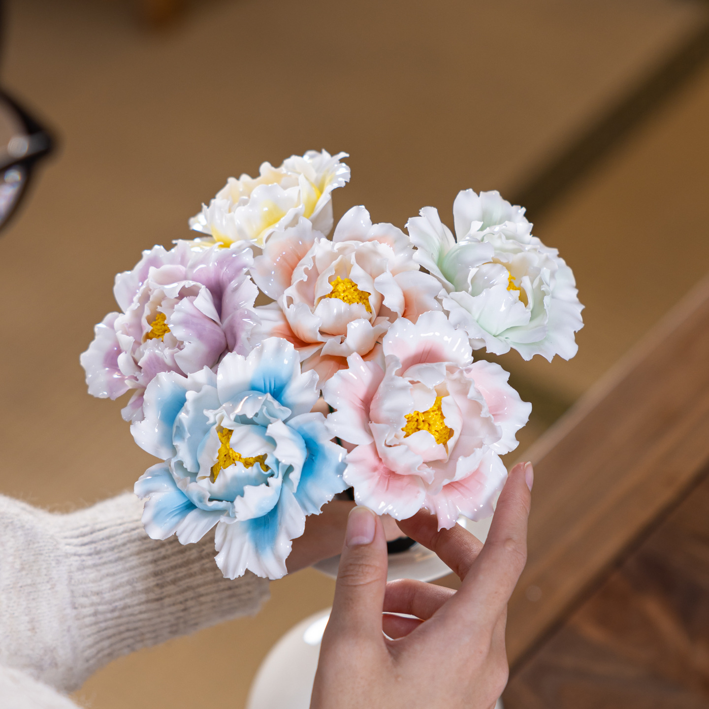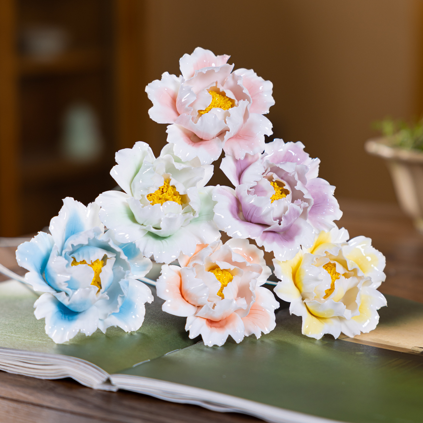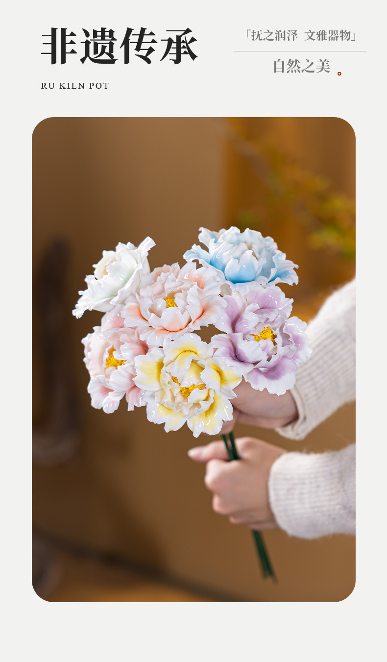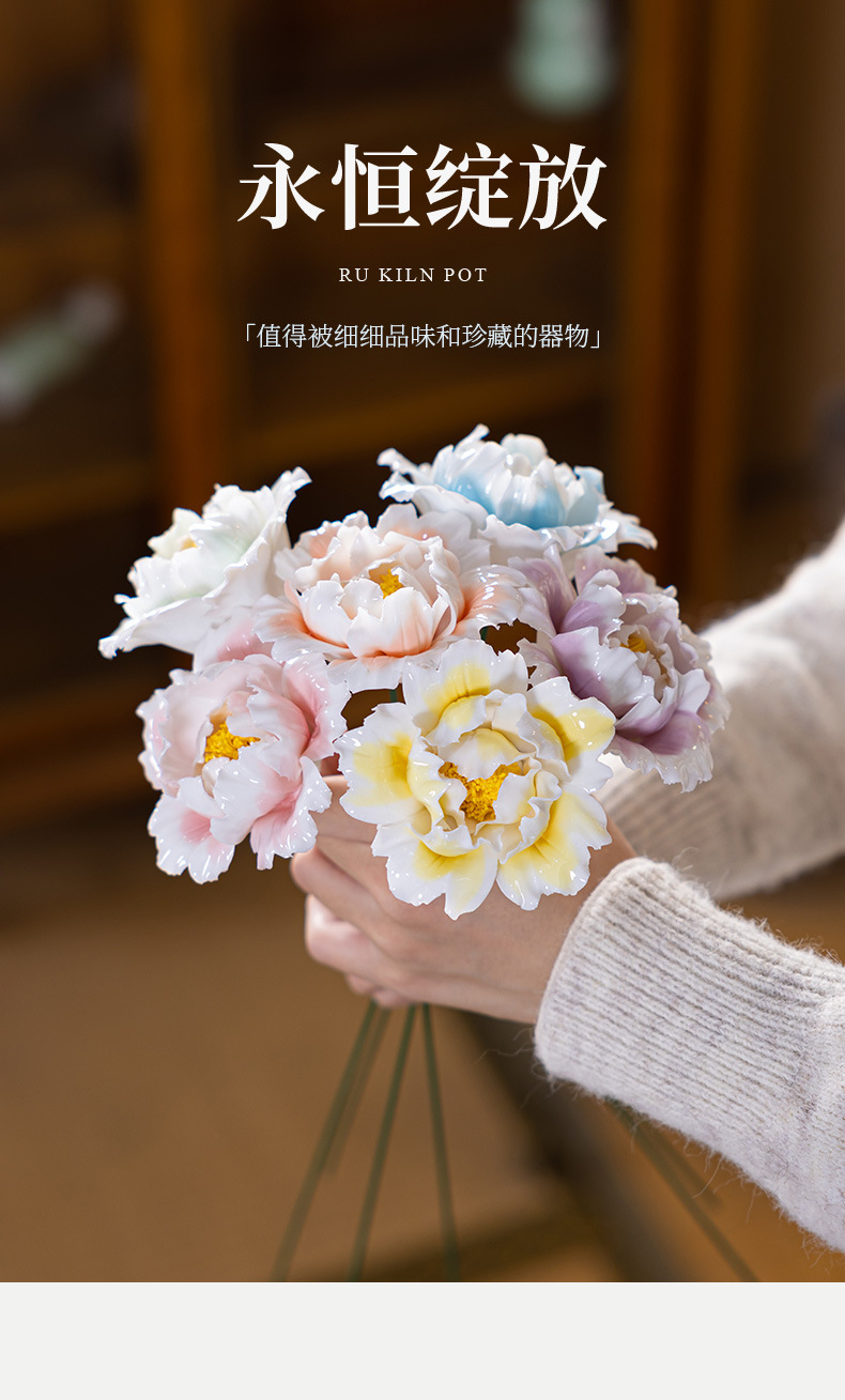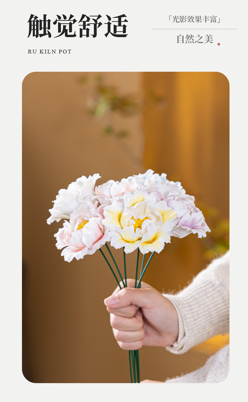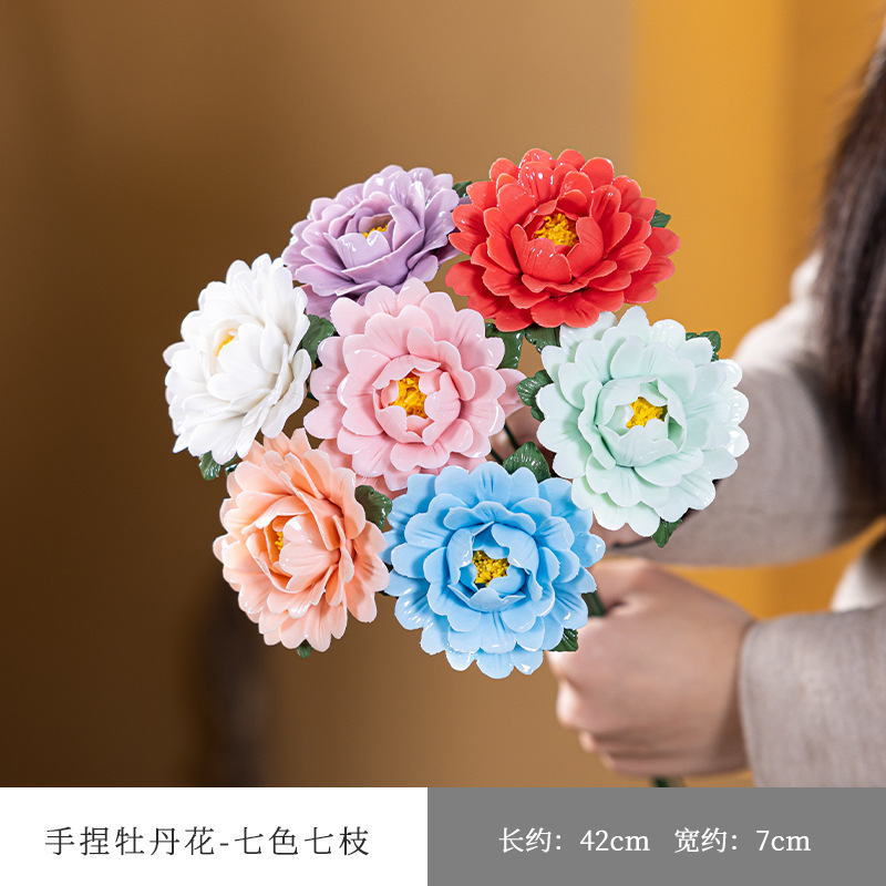 six branches of hand-modeled peony flowers with gradient coloring
