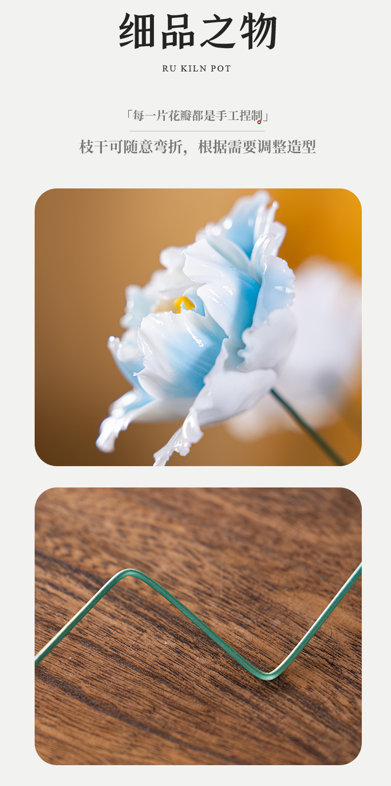 hand-pinched peony flower, blue