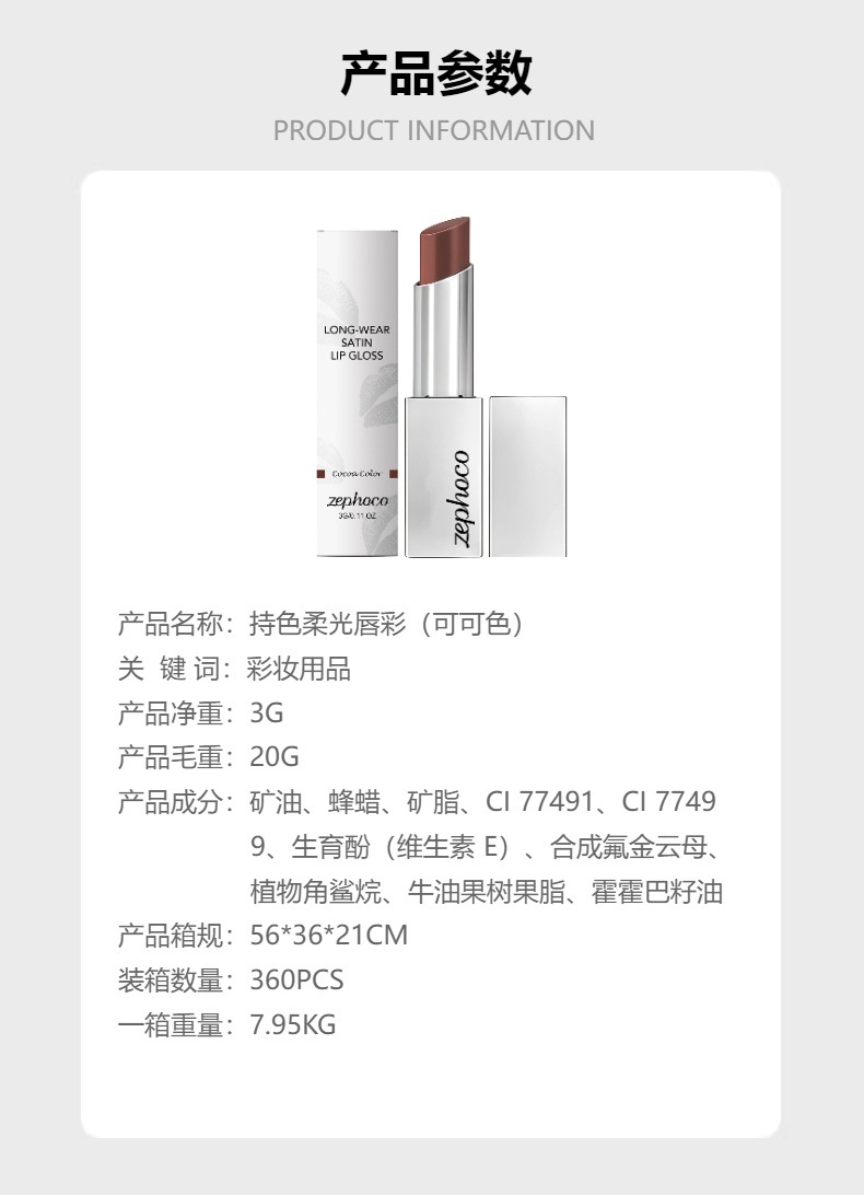 zephoco long-lasting soft-light lip gloss (cocoa color)-shiny, smooth, easy to apply, versatile for everyday lip makeup