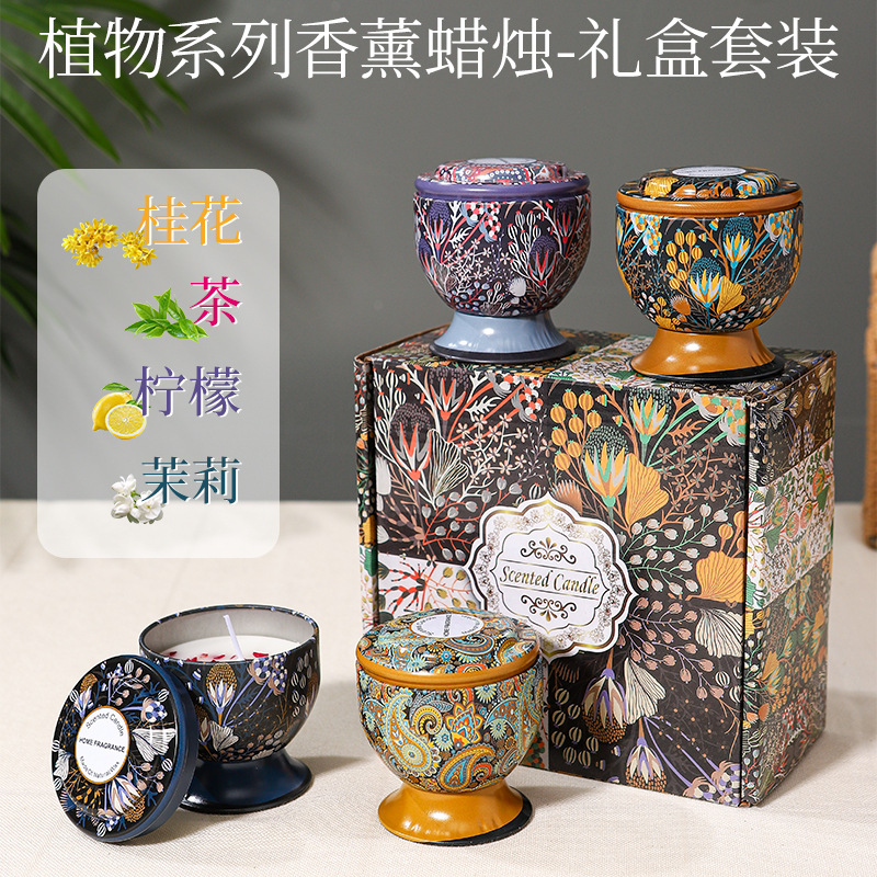 tall glass scented candle [style 4, 4-piece gift set] osmanthus-tea-lemon-jasmine