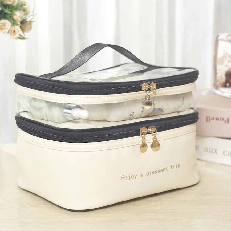 solid color double-layer pu cosmetic bag storage bag