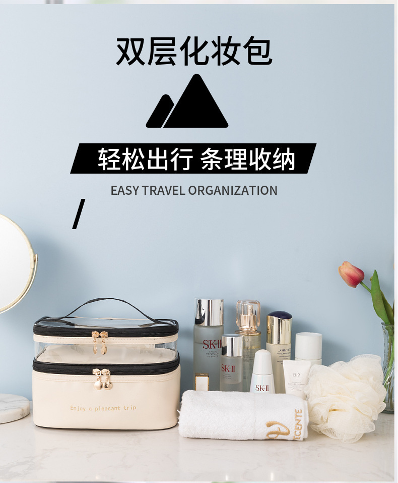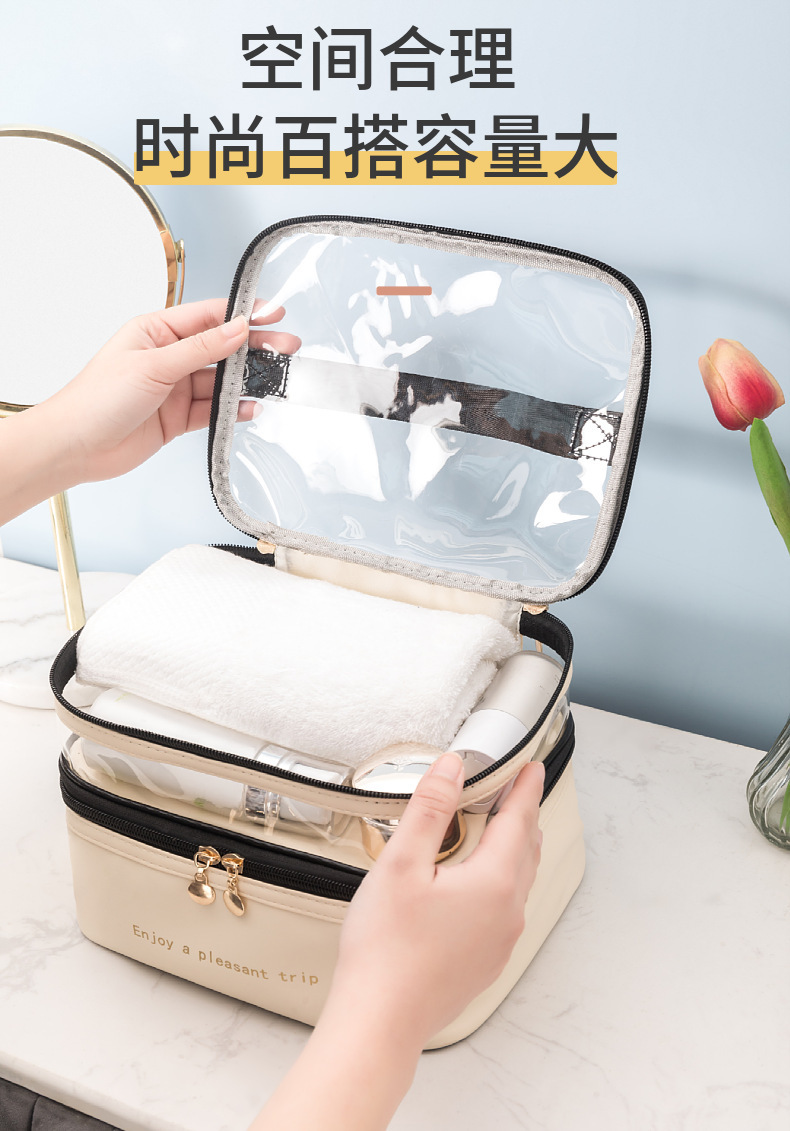 item no.: solid color double-layer pu cosmetic bag storage bag