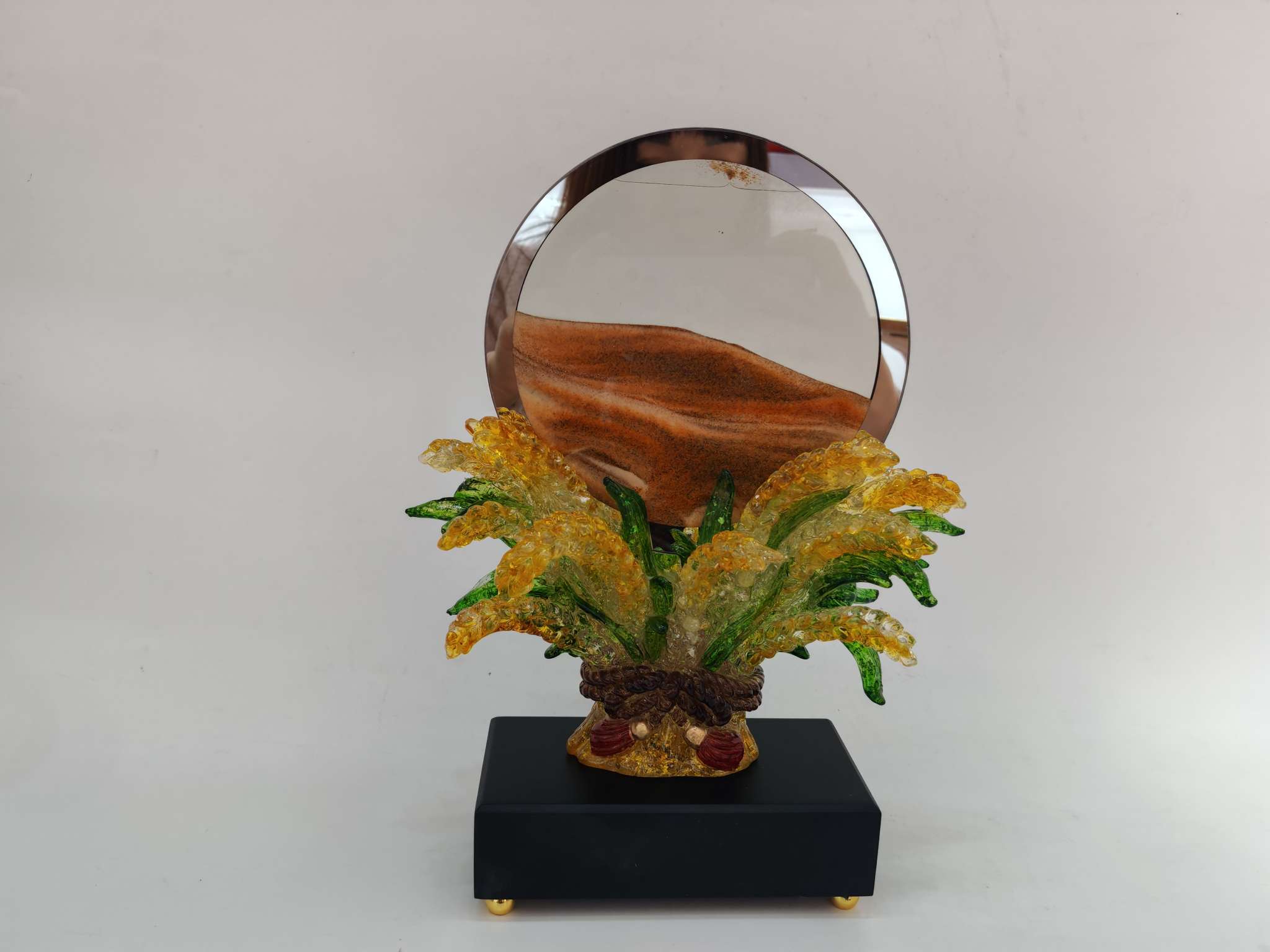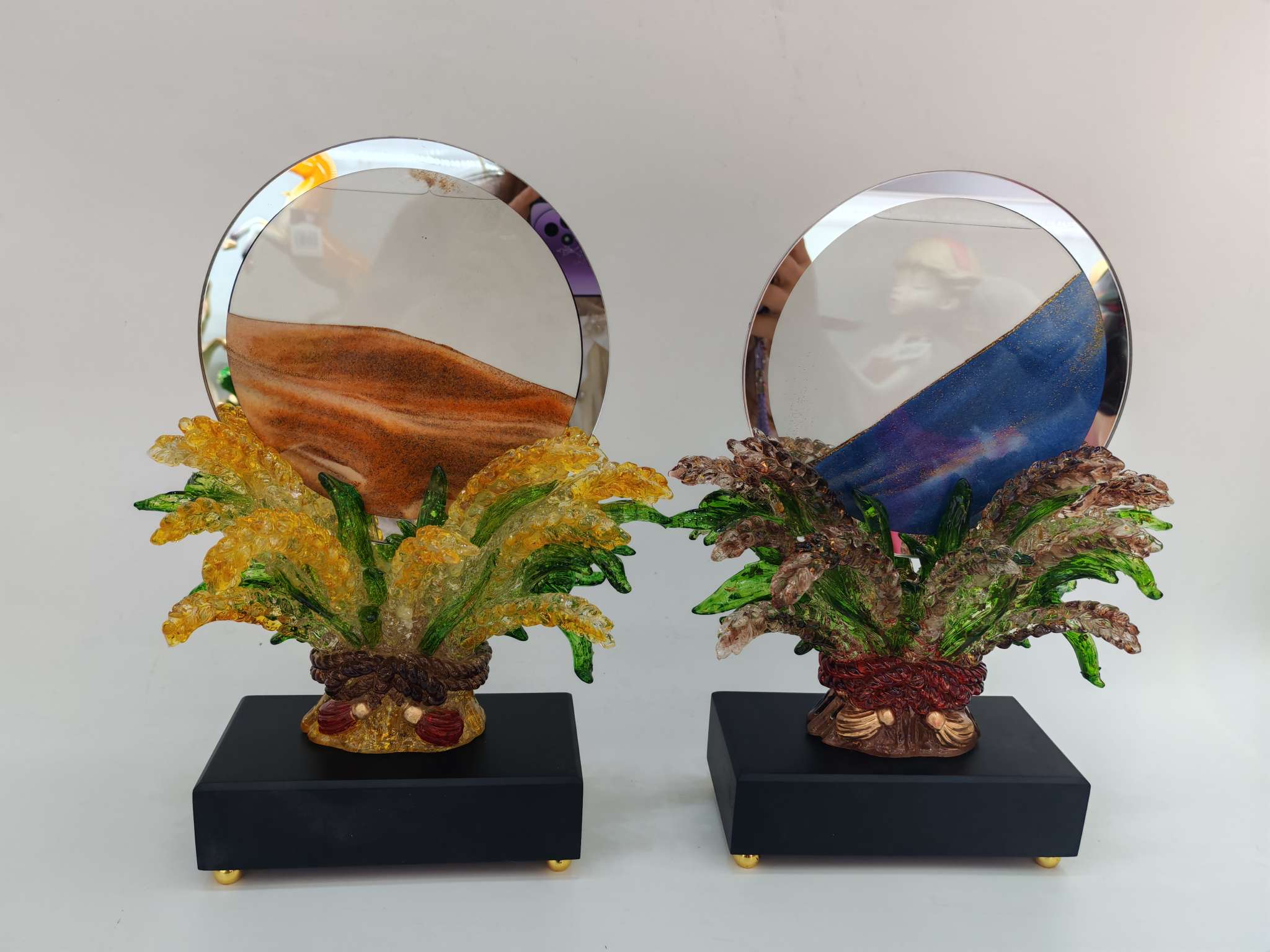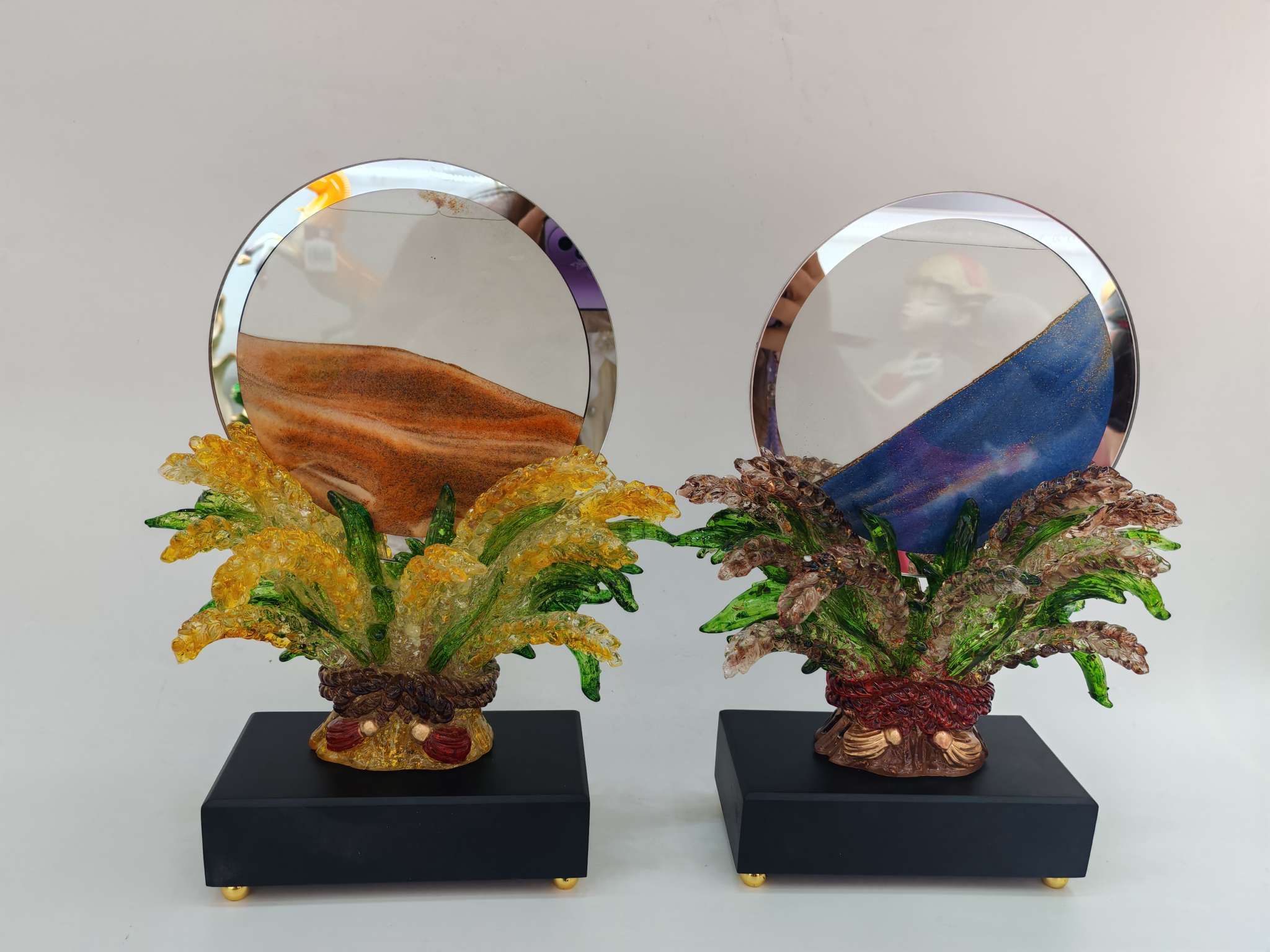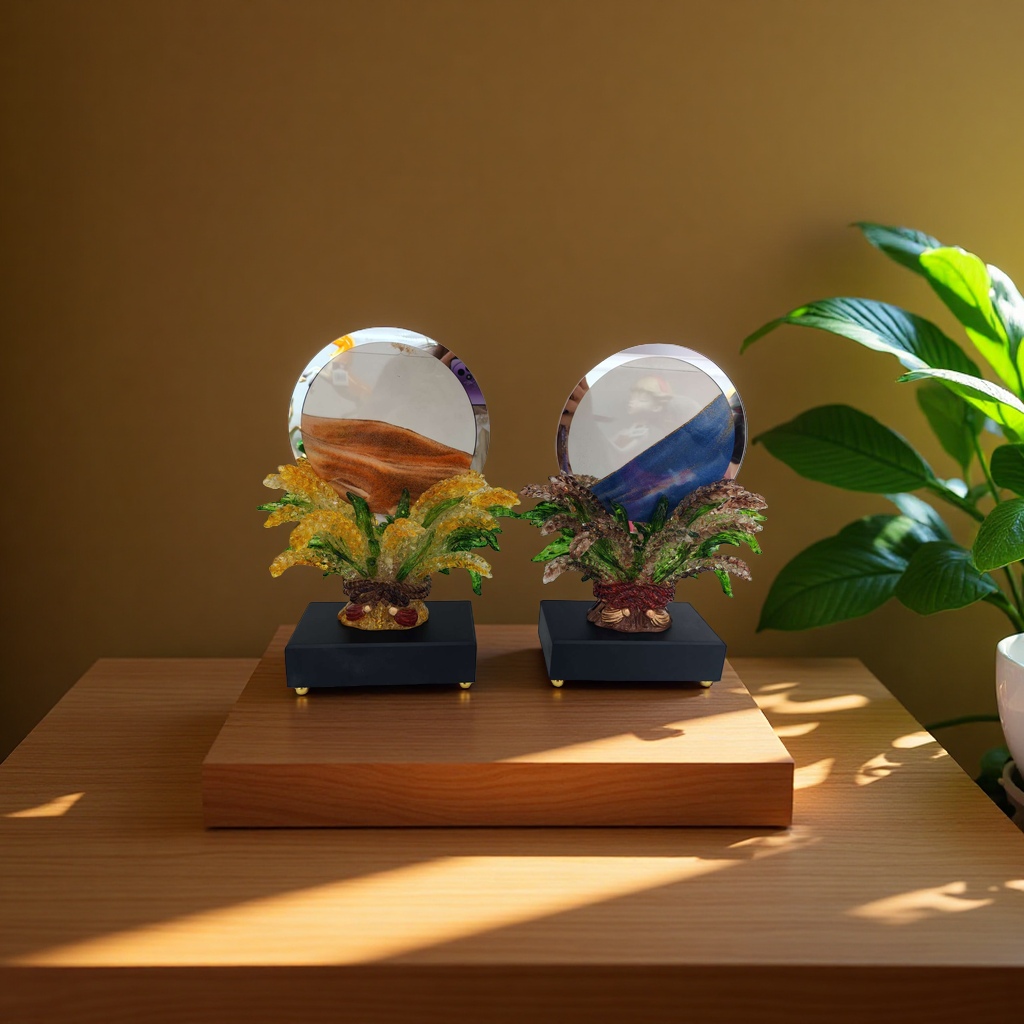 This resin sand flow ornament is made of resin material with safety certification, creating a dreamy flowing landscape. It is carefully handcrafted, durable and leak-proof, suitable for office desk and bedroom decoration.Every drop of sand is the gentle company of time, bringing you tranquility and inspiration.