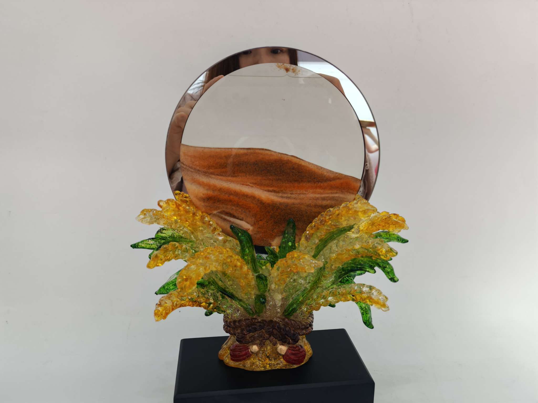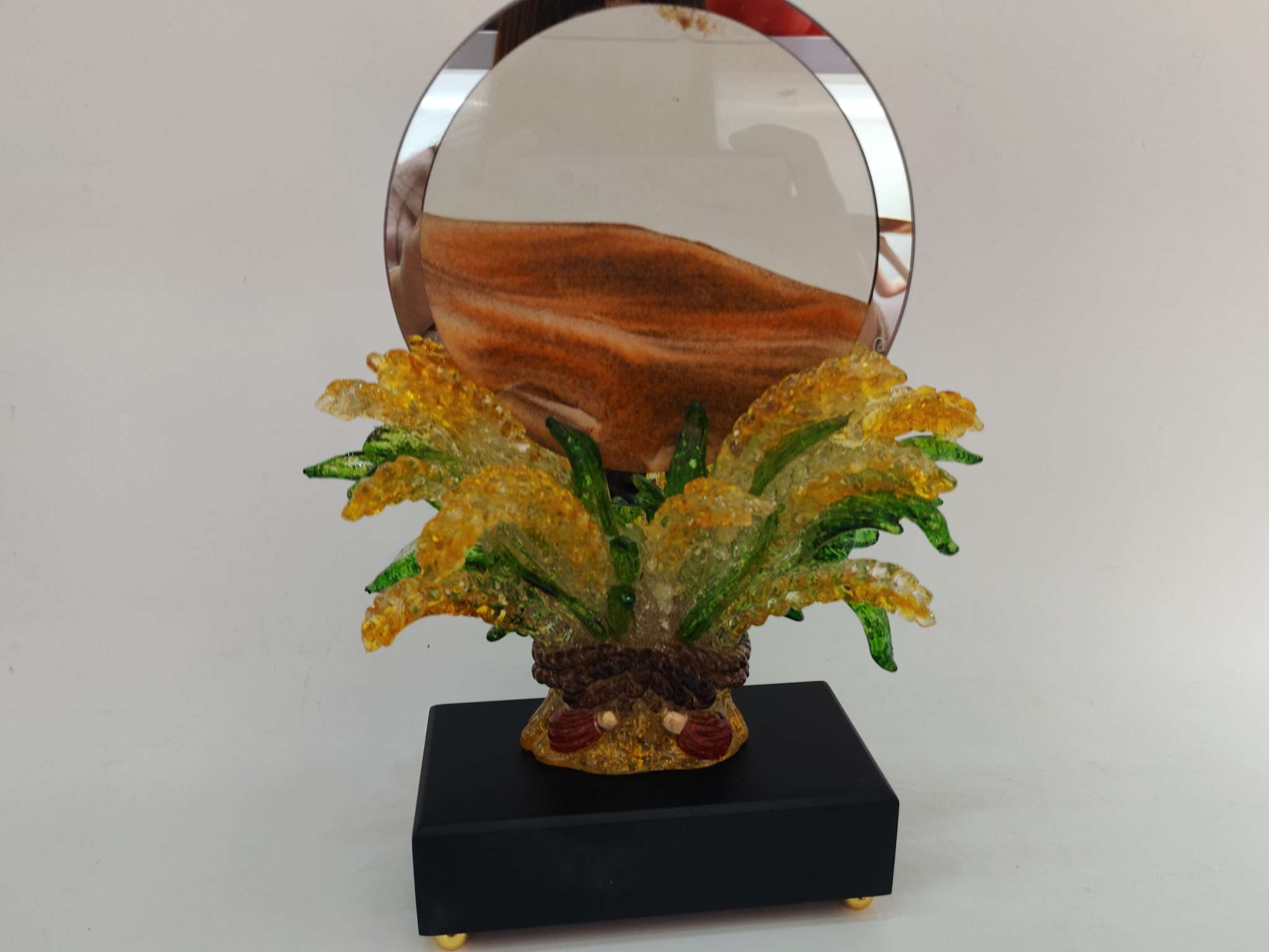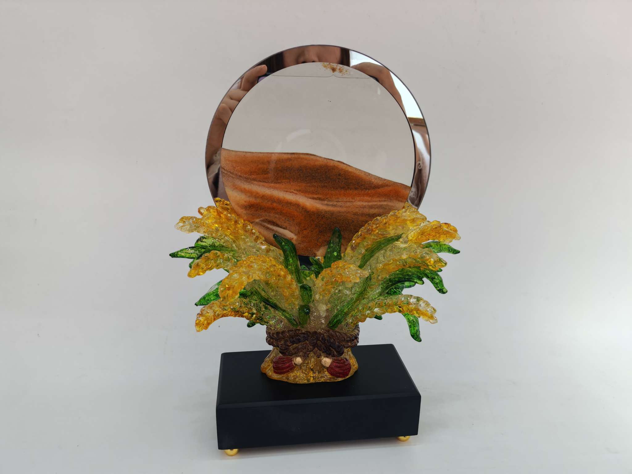 This resin sand flow ornament is made of resin material with safety certification, creating a dreamy flowing landscape. It is carefully handcrafted, durable and leak-proof, suitable for office desk and bedroom decoration.Every drop of sand is the gentle company of time, bringing you tranquility and inspiration.