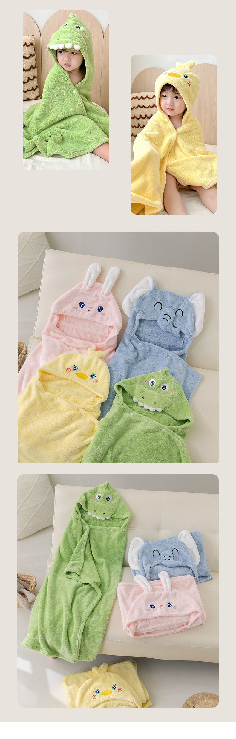 green crocodile, blue elephant, pink bunny, piyopiyo