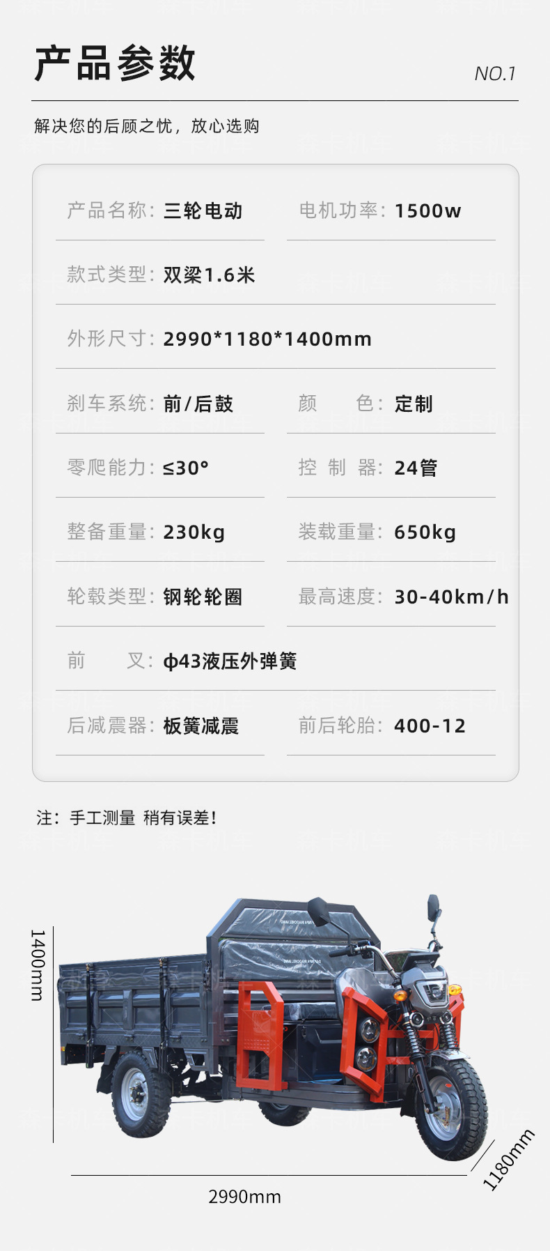 vehicle size: 2990*1180 * 1400mm