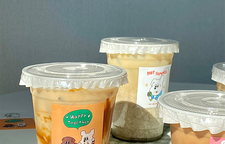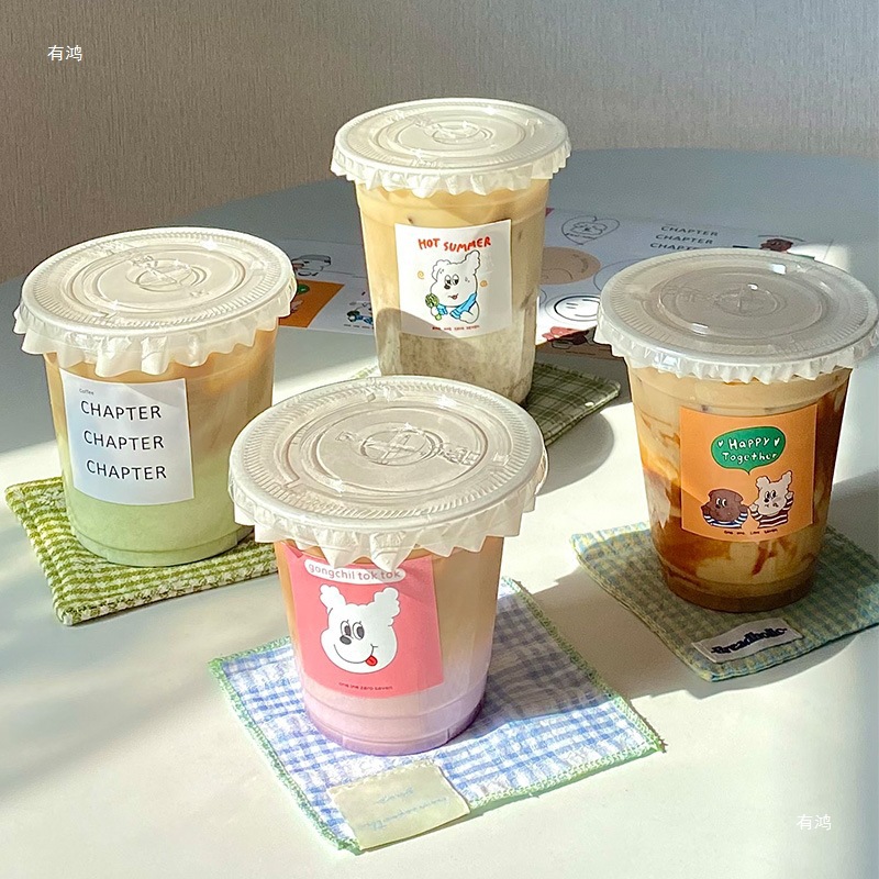 300 sets of thickened 360ml flat lid with fine tube leak-proof paper + stickers