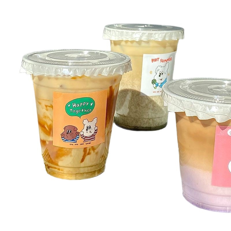 100 sets of chubby 500ml flat lid with thick tube leak-proof paper + stickers