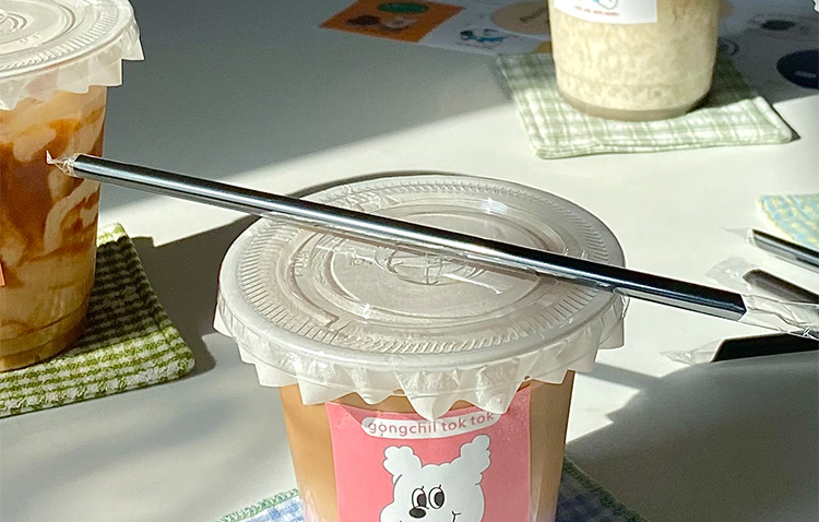 100 sets of tall slim 500ml flat lid with thin tube leak-proof paper + stickers