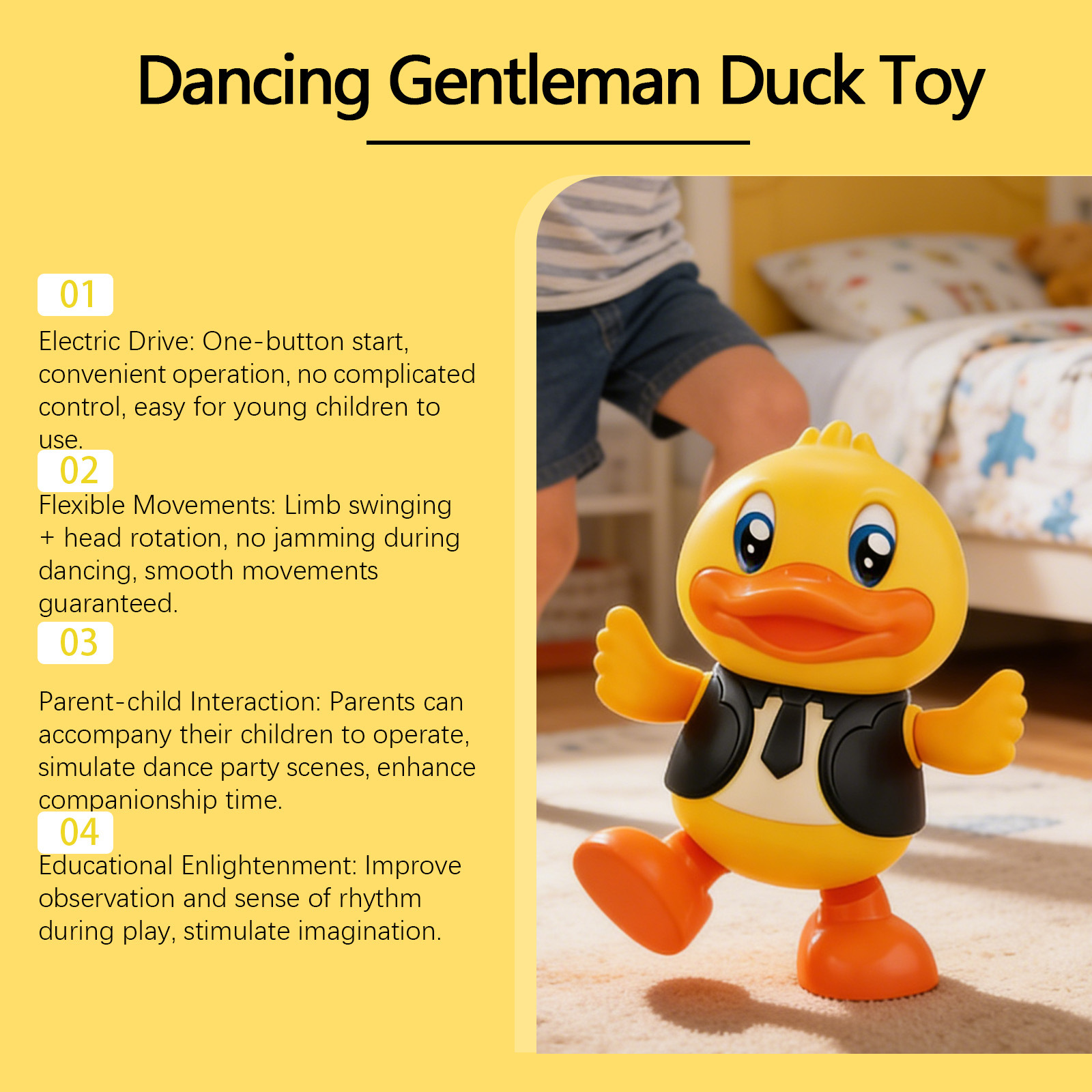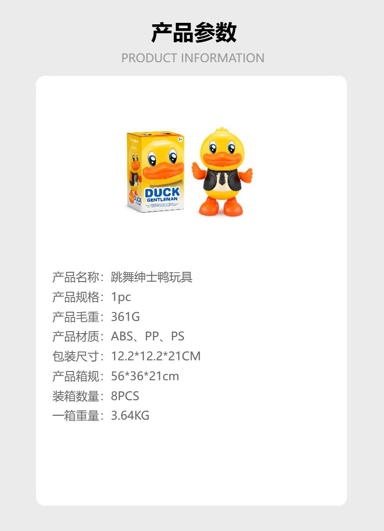 dowmoo dancing gentleman duck toy dancing walking sound and light special effect cute funny gentleman duck shape multi-combination