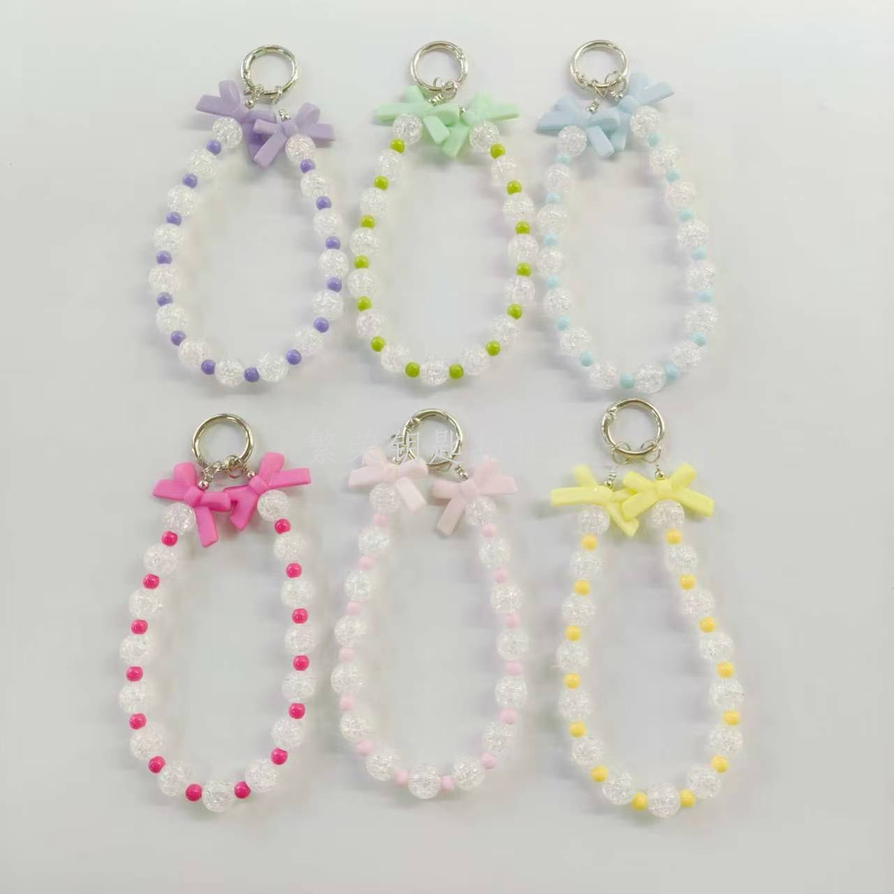 new bow-knot beaded mobile phone charm lucky four-leaf clover keychain pendant cute backpack decorative hanging chain wholesale