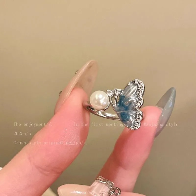 m154 [blue large pearl butterfly ring]