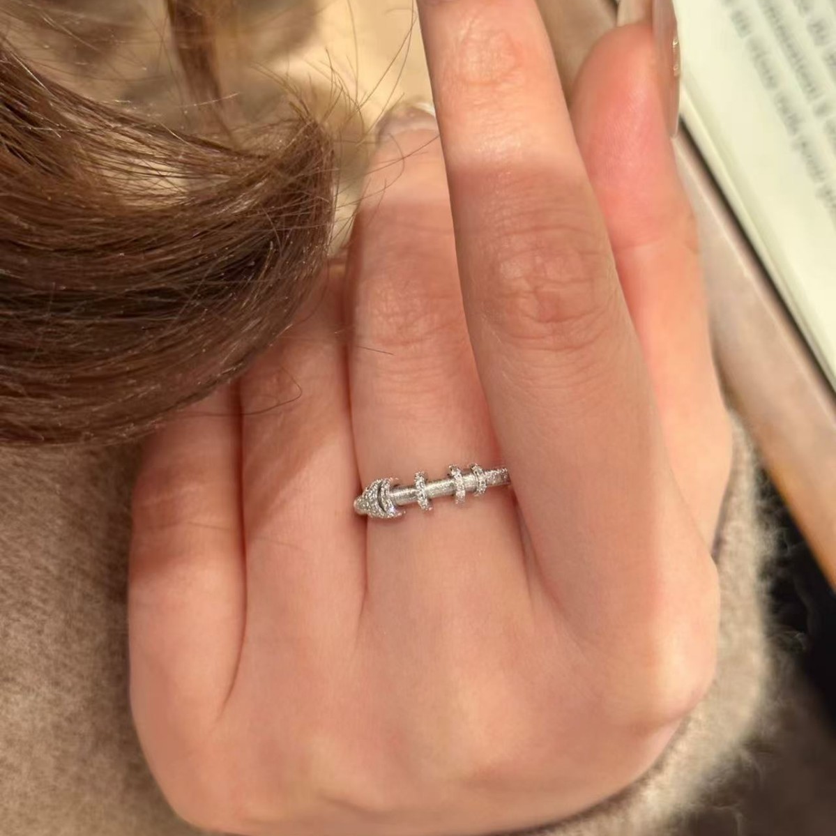 silver brushed flexible ring ring