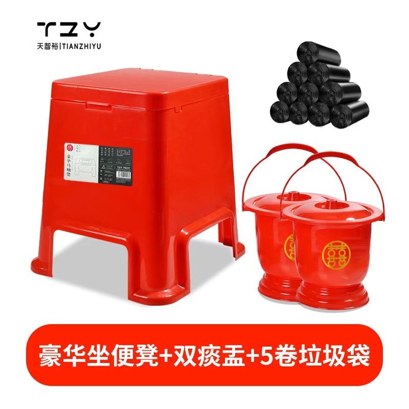 tzy red toilet seat 9518*1 + solid double inner barrel +5 rolls garbage bag