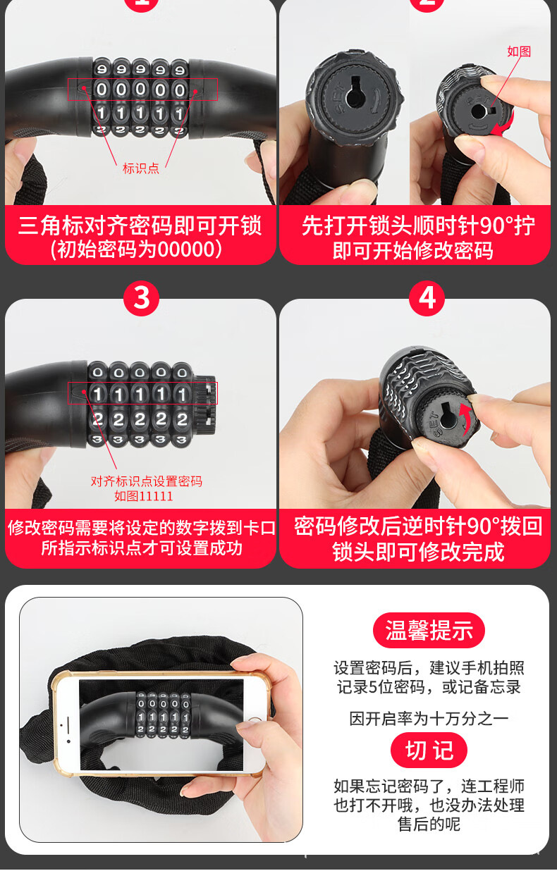 (reflective cloth cover) 0.9m password chain lock
