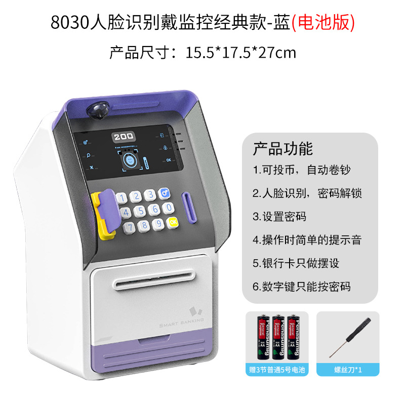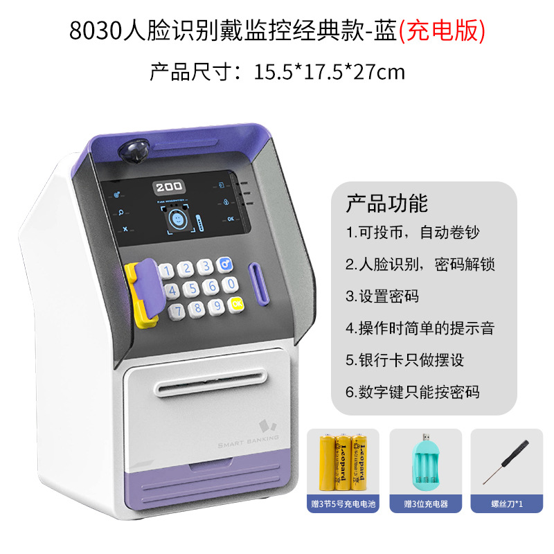 8010 facial recognition upgraded version with display screen-blue (rechargeable version)